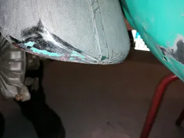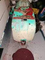 Jetzt noch den Tunnel und Beinschild von außen und den Kotflügel. Dann isse wieder hübsch. Ca 30-35 Std habe ich bis jetzt gebraucht. Mehrfaches Stecheisen schärfen,6 Kakaos,ca. 1.75L Aceton,ca. 2 qm Lappen,ca. 3 L Kola, eine kleine Tüte Twix,nen Döner und sehr viele nicht jugendfreie Flüche.
