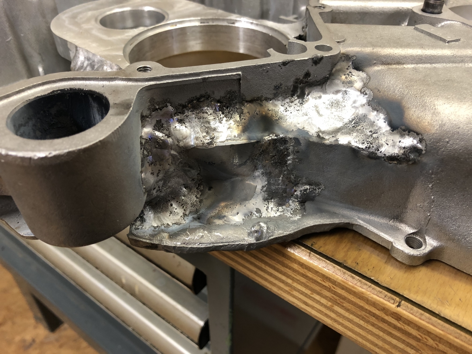 Krass ist der Verzug im Getriebebereich. Konkreter gesagt die Dichtfläche. Die pendelt bestimmt um einen Millimeter locker.