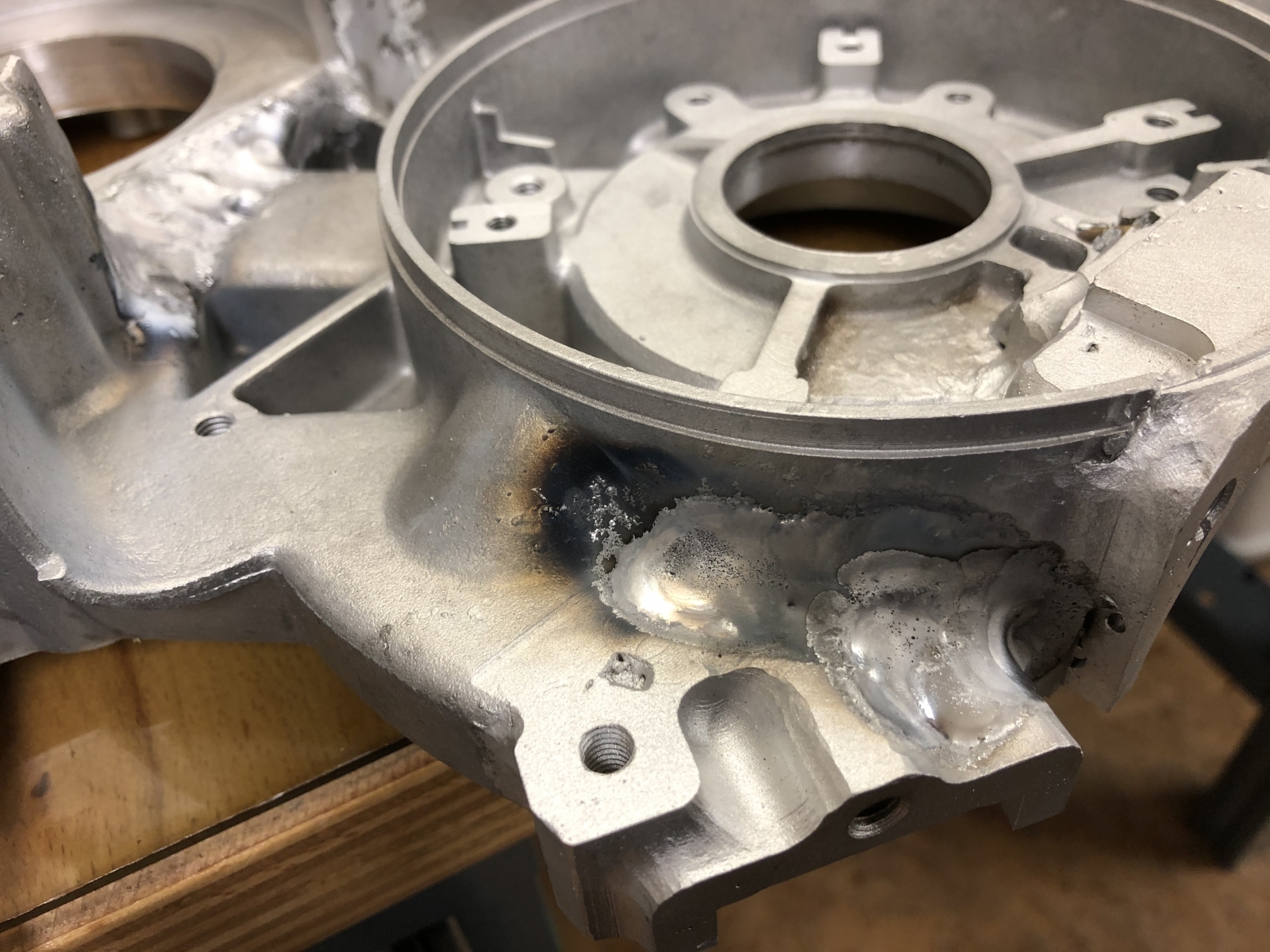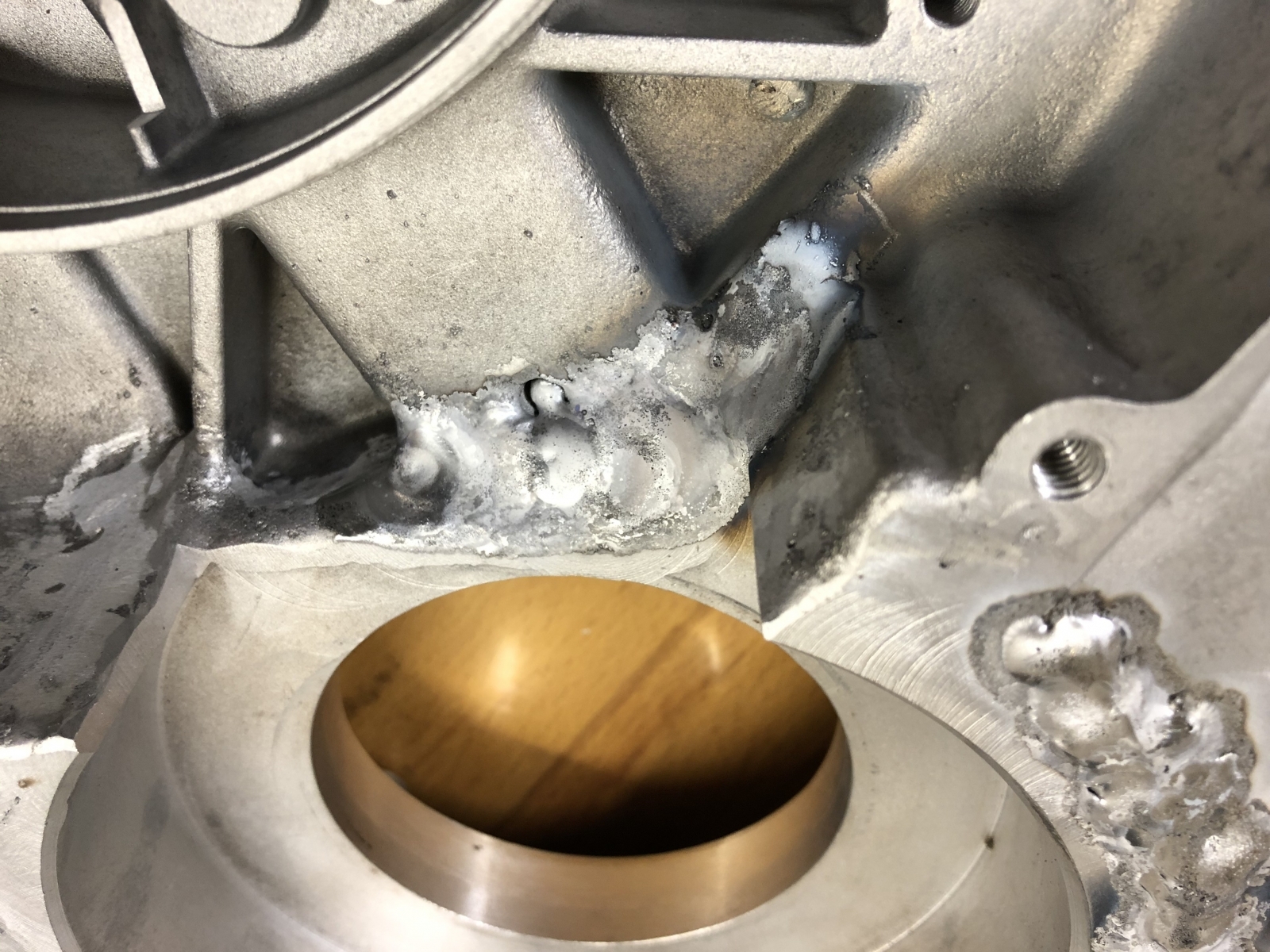 Der Sitz von der Großen Lagerhülse von dem Eingangsrad in meinem Alutopf plus Aluplatte ist verzogen.