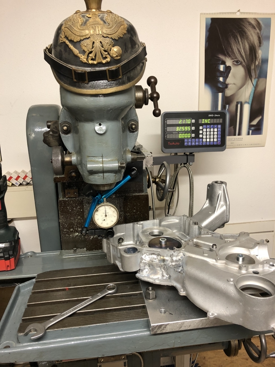 Am Montag kann ich dann auch noch zwei Alustopfen drehen und einkleben. Die Bohrungen für den Kickstart und für die Schaltwelle müssen ja noch verschlossen werden, weil die künftig ohne Funktion sind.