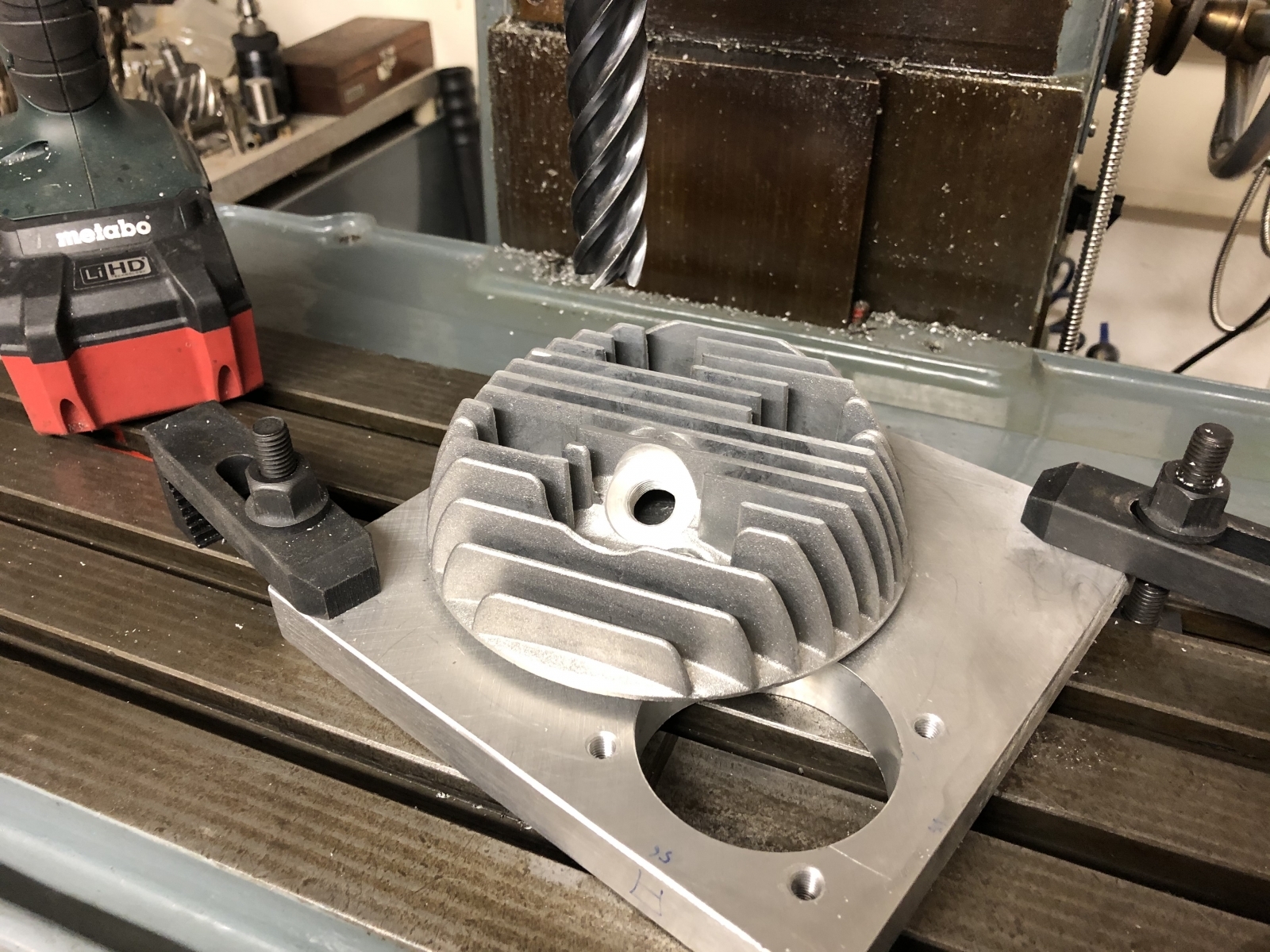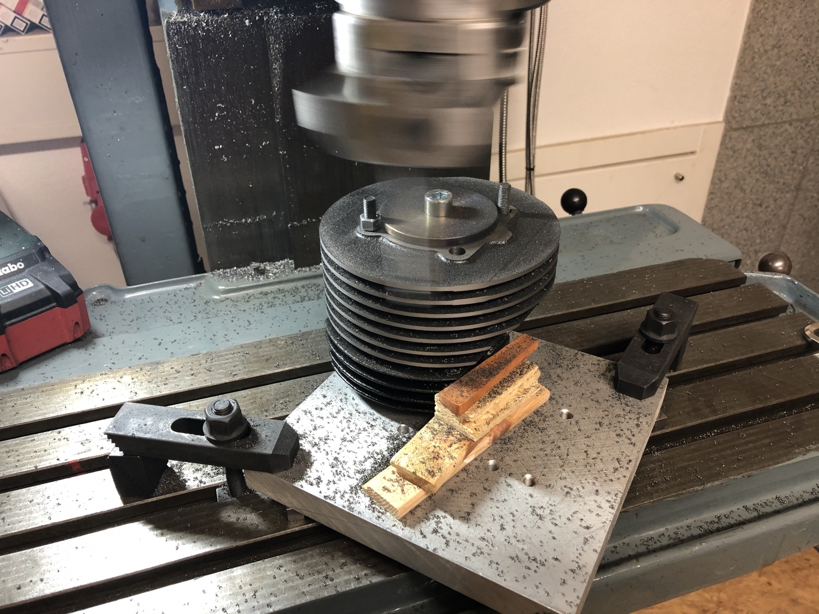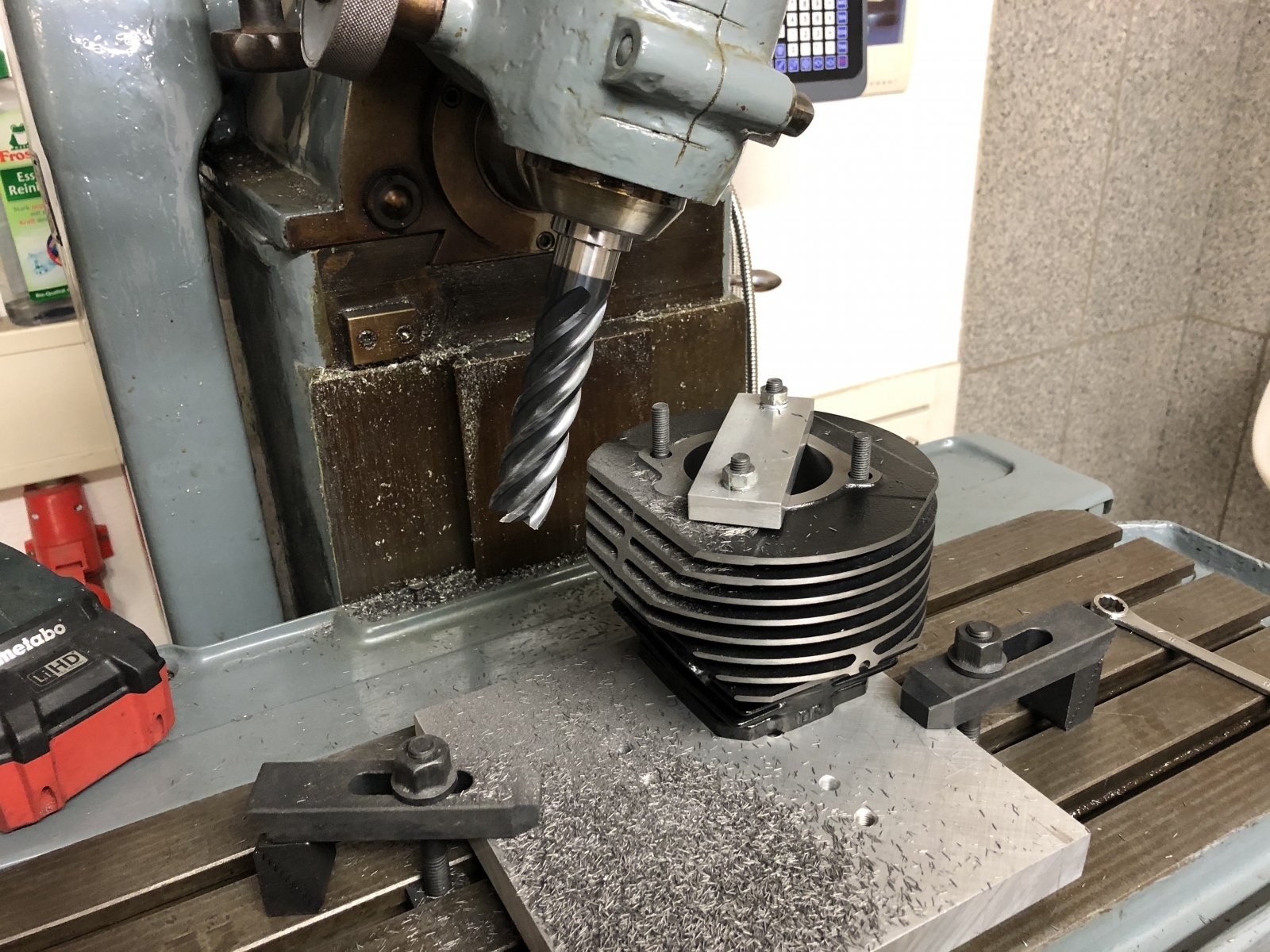 Ich sehe gerade keine andere Möglichkeit, wie ich das Blockieren beseitigen kann, ohne den Spindelbock abzuheben.