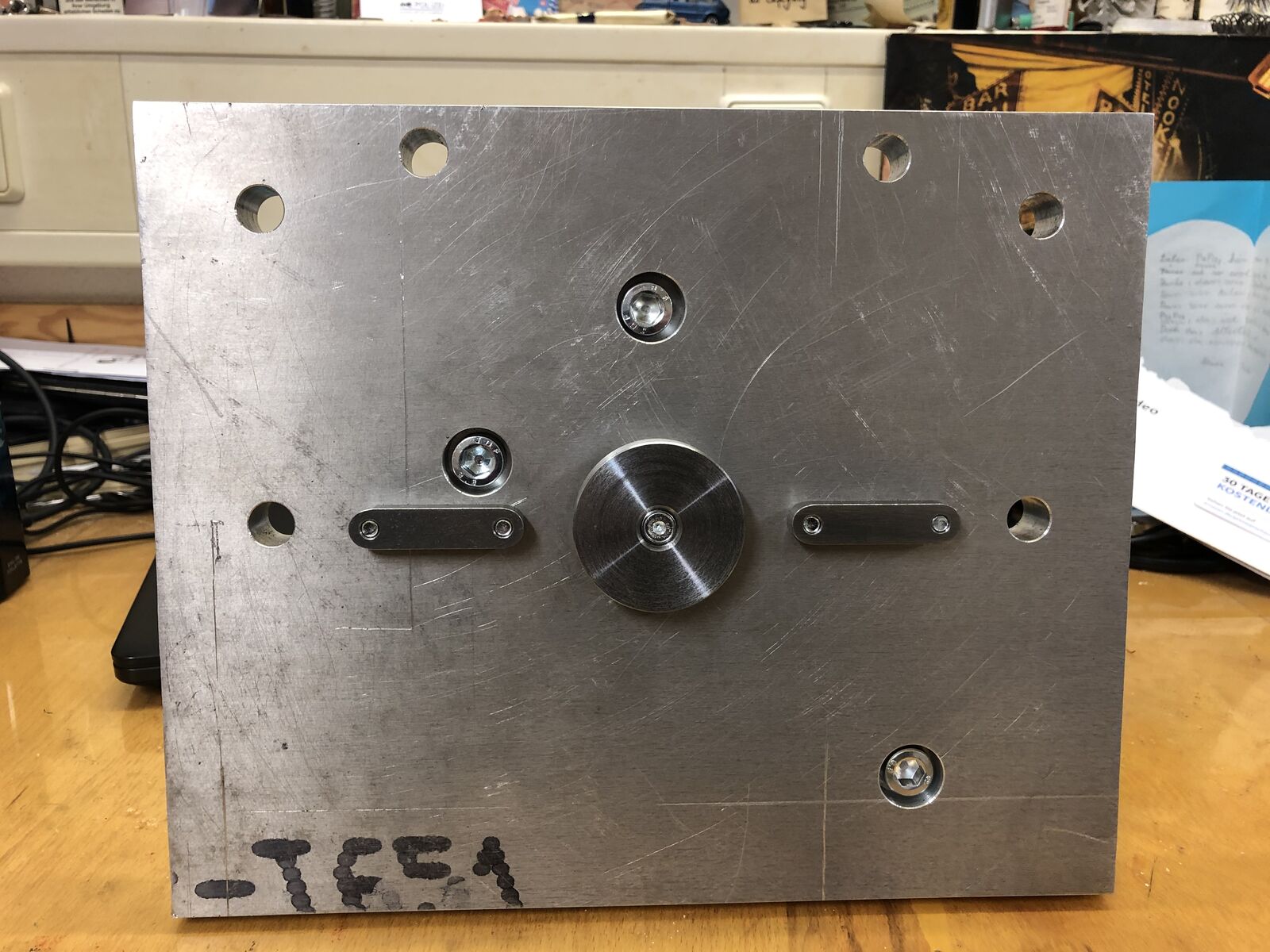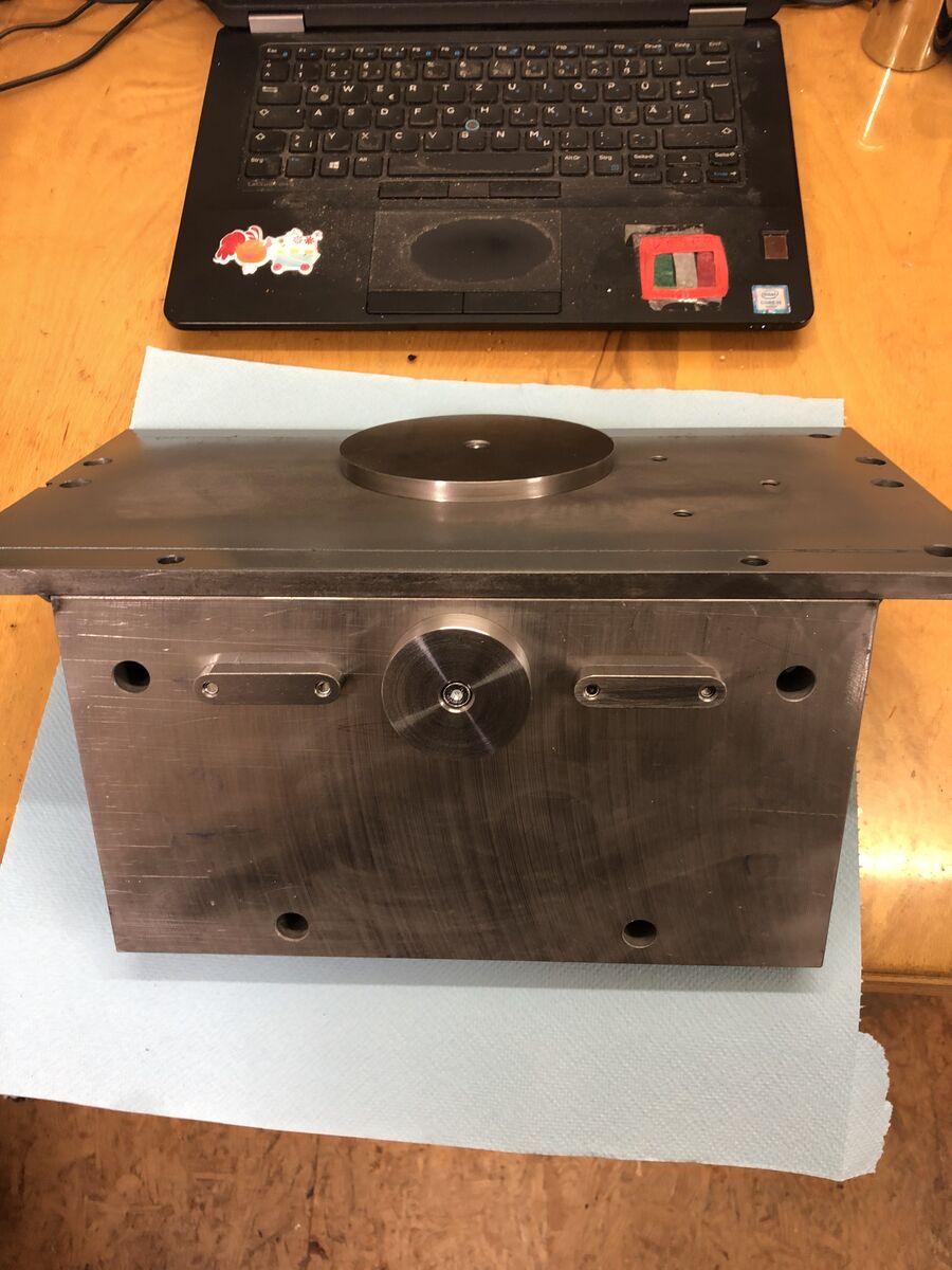 wenigstens ist die Grundplatte formatiert, die Bolzen fertig und die ober Platte mal so gebohrt, daß das Gehäuse eben auf den Dichtflächen aufliegt.