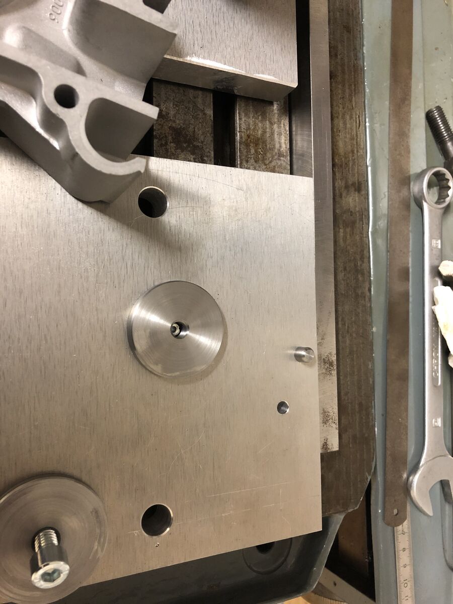 Das Gehäuse werde ich auf der Vorrichtung nicht so bequem befestigen können, ich werde einen Teil der Gehäuseschraubenbohrungen nehmen müssen.