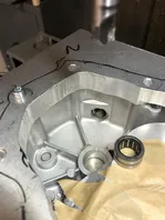 Was ich noch nicht montieren konnte, war das Nadellager in dieser Gehäusehälfte für die Abtriebswelle. Der Lagersitz ist wegen dem Schweißen der Aluglocke etwas eierig und dem muß ich nochmal ausspindeln.