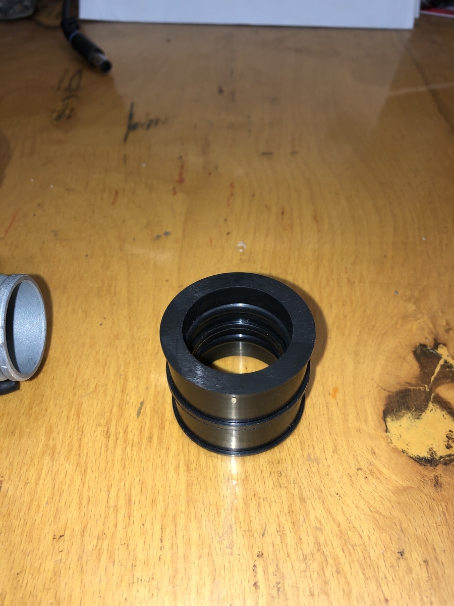 die Hülse nochmal aufgefangen und die Schmiernut gefräst. Dann die Nadelhülse eingeklebt.