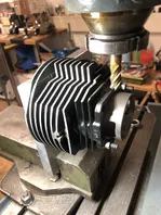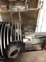 Unterschlagen habe ich heute die Fläche am Zylinder eben fräsen, daß das Polrad nicht streift. Dazu habe ich keine Lust mehr, weil es eine knappe Kiste ist, nicht in den Überströmer durchzubrechen.