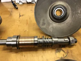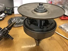 Also: Wandler wird vom Motor über die Malossi-Multivar und den Riemen angtrieben und dreht frei innerhalb des Eingangsrades mit meinem selber gemachten Bronzelager auf der Wandlerwelle.