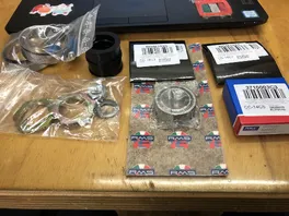 2 Mutter für den Wandler, die dermaßen kacke gefertigt sind, Sicherungsblech und Mutter für die Seite, die bei der Schaltvespa Primärseite heißt und das Lager und Wedi dazu (als Druckstück mache ich ja das alte 14er Primärritzel von der Ape auf die Seite drauf, das walkt dann das Fett im Viereck rum an der Stelle), Vergaserfummelgummi und die Schellen dazu.