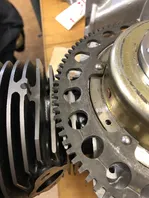 Der Polradtopf läuft ja blitzsauber, aber der Anlasserkranz hat einen Achter von guten 1,5 mm und an der höchsten Stelle touchiert er noch die gefräste Fläche ganz leicht.