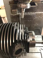 Danach habe ich mir den Zylinder vorgenommen. Ich mußte glaube ich in 6 verschiedenen Aufspannungen das Ding bearbeiten, bis alles weg war, was stört: