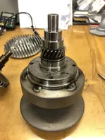 Den aufgepreßten Mitnehmer für das Abtriebsrad hat ein netter Kollege verschweißt. Da kommt ja schließlich das Moment drauf: