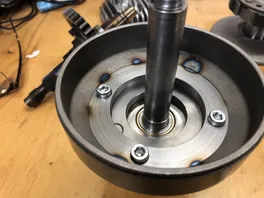 Als zweites werde ich den Polradtopf nochmals abschrauben und die Anlagefläche des Topfes um 0,5 - 0,7 mm nachsetzen.