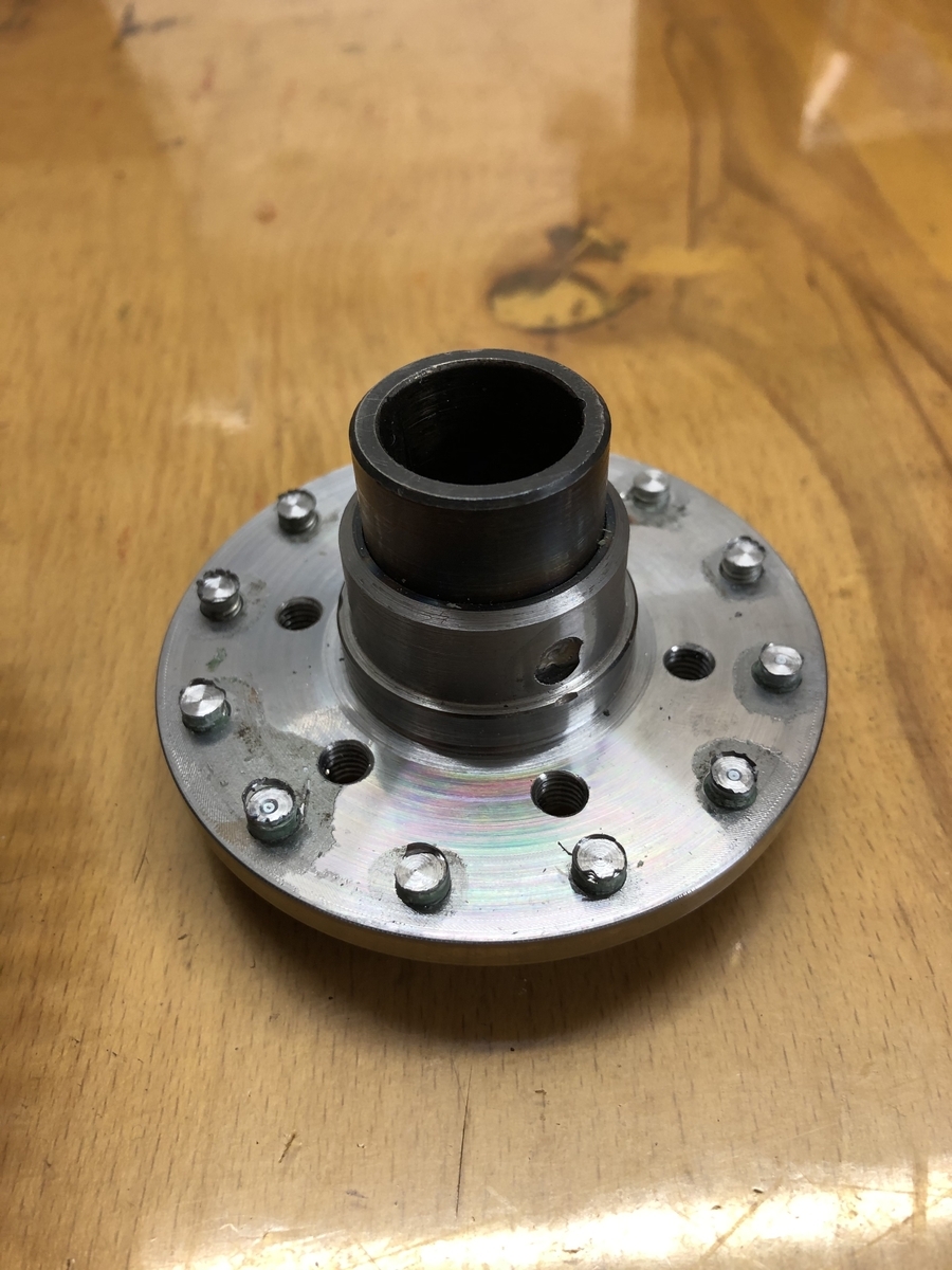 Den Polradtopf selber nochmals verschieben auf dem Konus will ich nicht, dabei geht mir Schraublänge der Flanschkopfschrauben verloren.