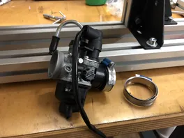 Den Choke habe ich mit dem Labornetzteil betrieben, damit er langsam zu geht und der Strom für den Anlasser kam von der fetten Batterie der Ape. Der PHVB bekam zum Start einer 112er Düse, weil er ja direkt ohne Luftfilter lief.