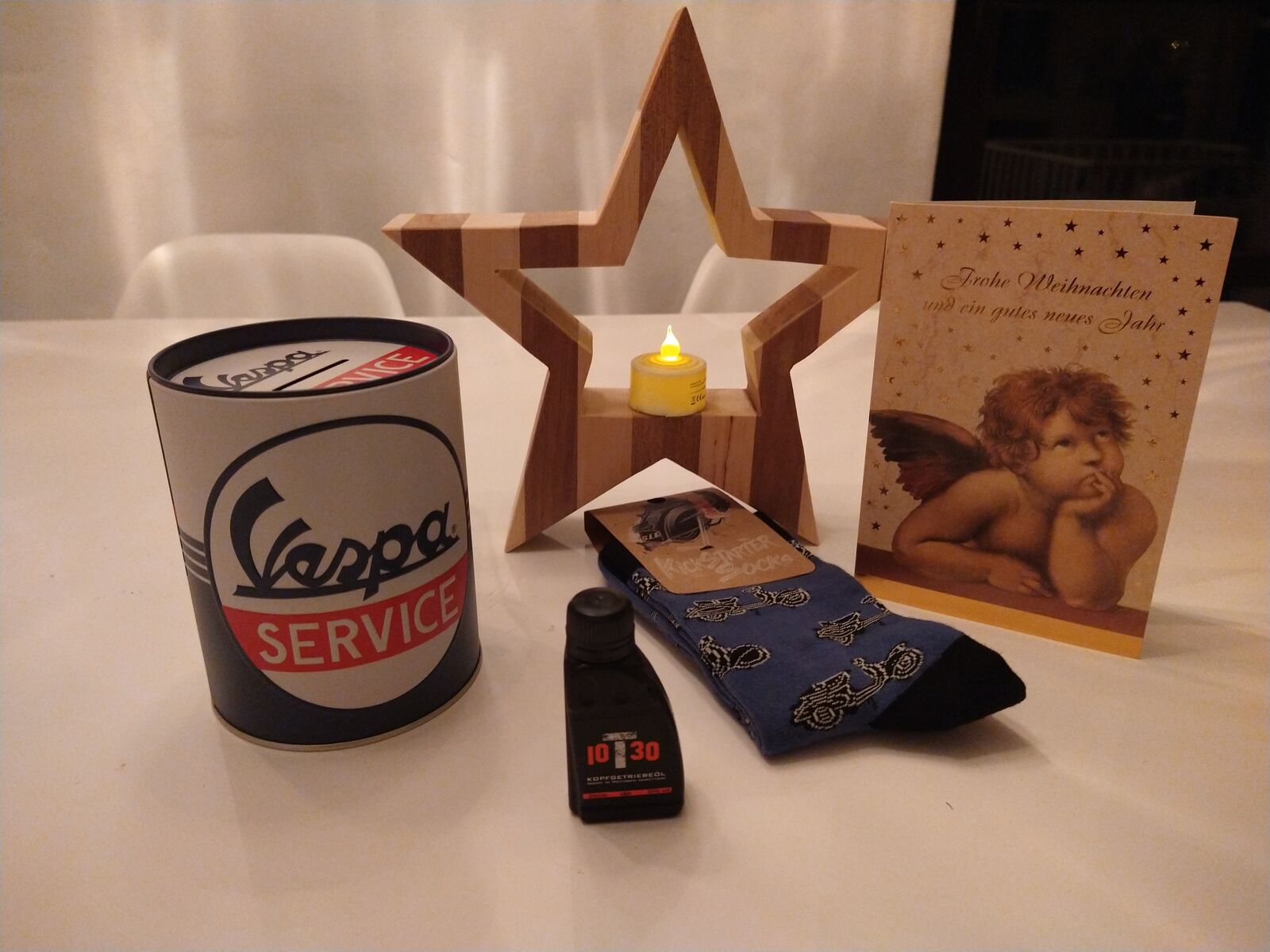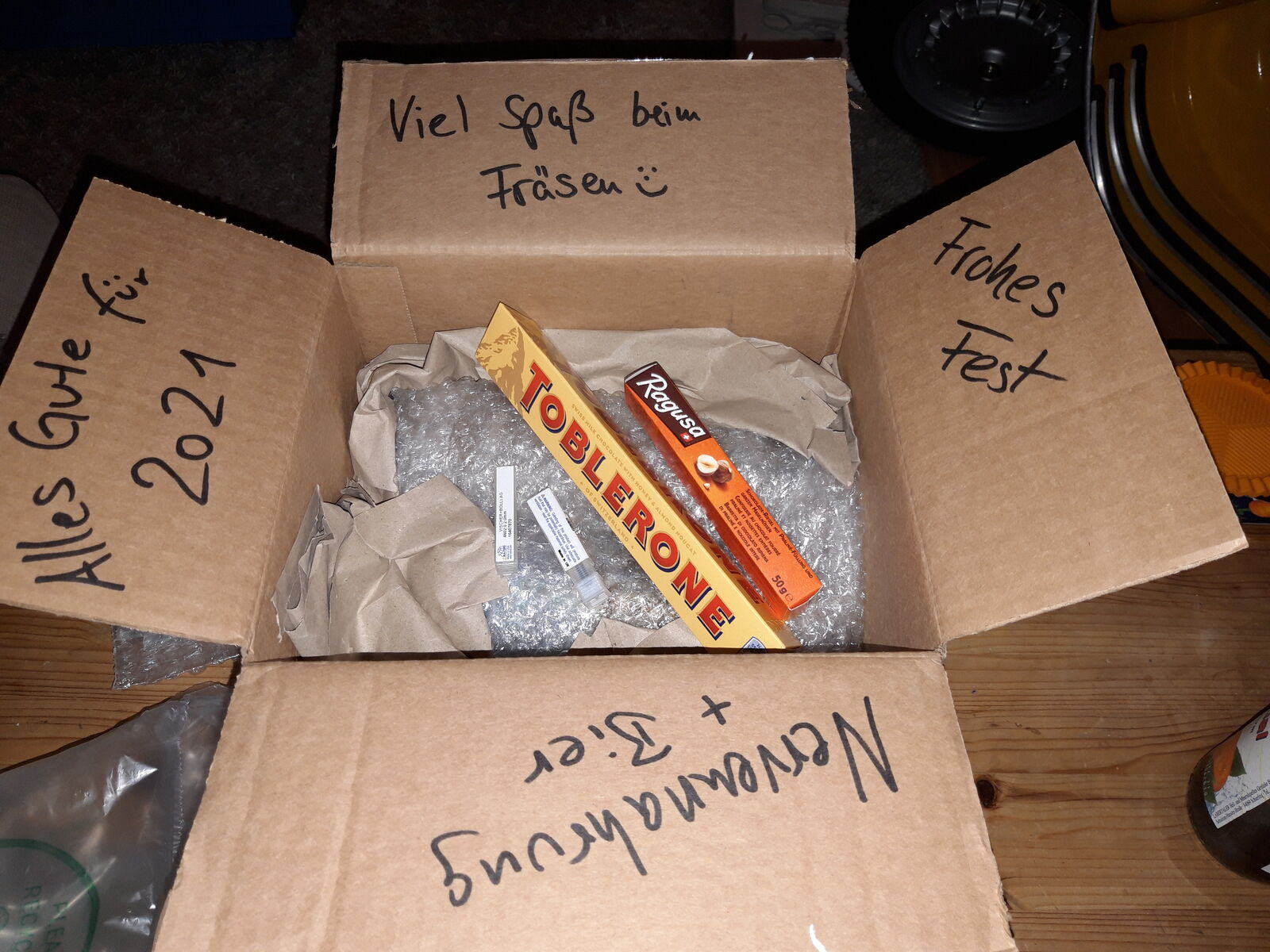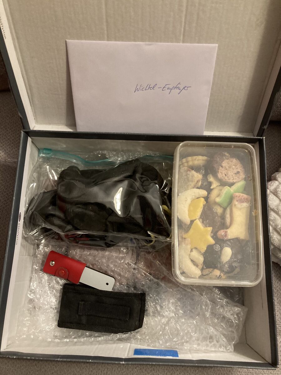 Mein Wichtel hat bestimmt eine Großpackung Tesa aufgebraucht um Karton und Papier heil bei mir ankommen zu lassen. Aber nachdem das Tesa besiegt und der Karton offen war: