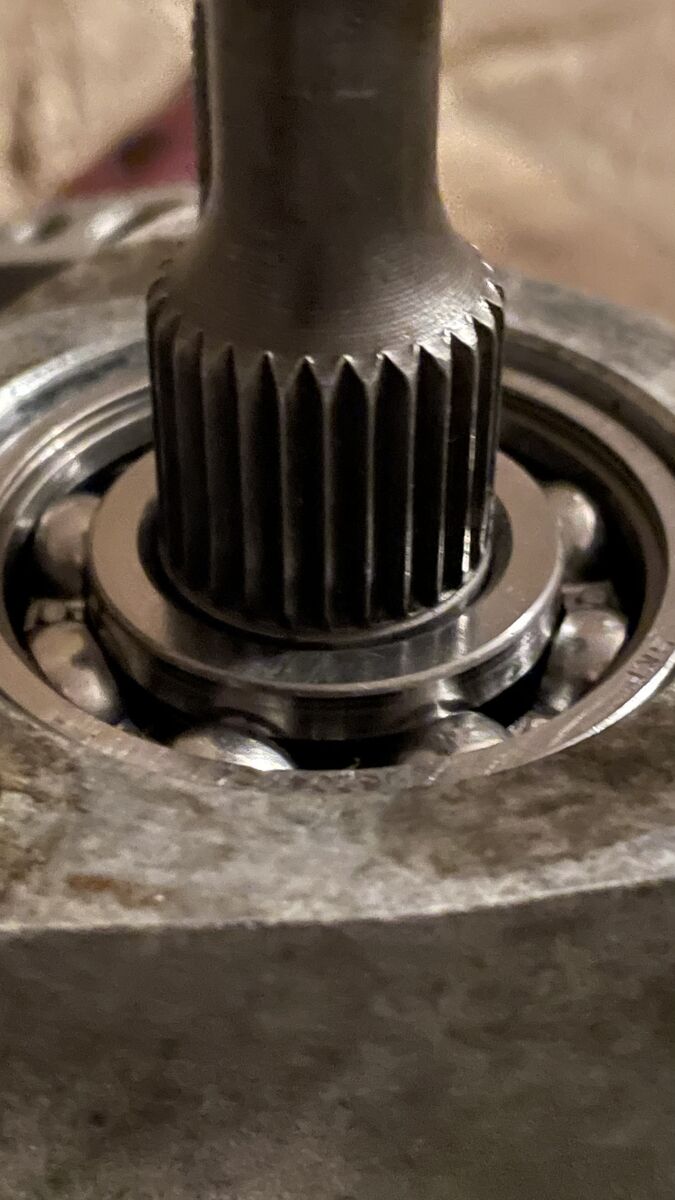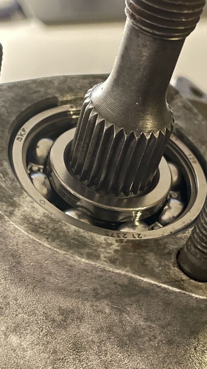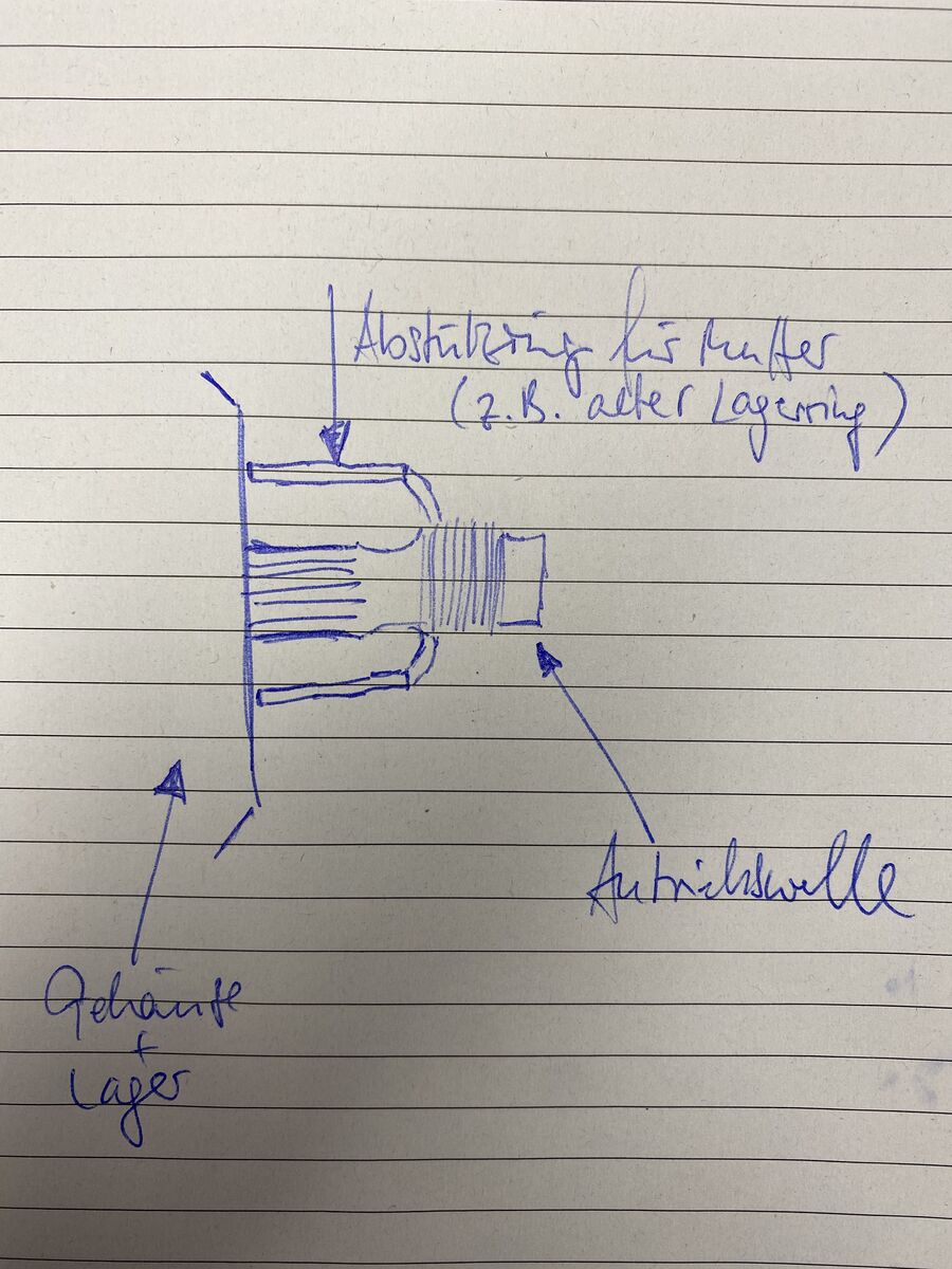 Ich bin gerade dabei die Hauptwelle in das Lager zu treiben und ich bin mir nicht ganz sicher ob die weit genug drin ist. Außerdem hat die Welle ganz schön Spiel wenn ich an den Gangräder etwas wackle (Lager sind neu).