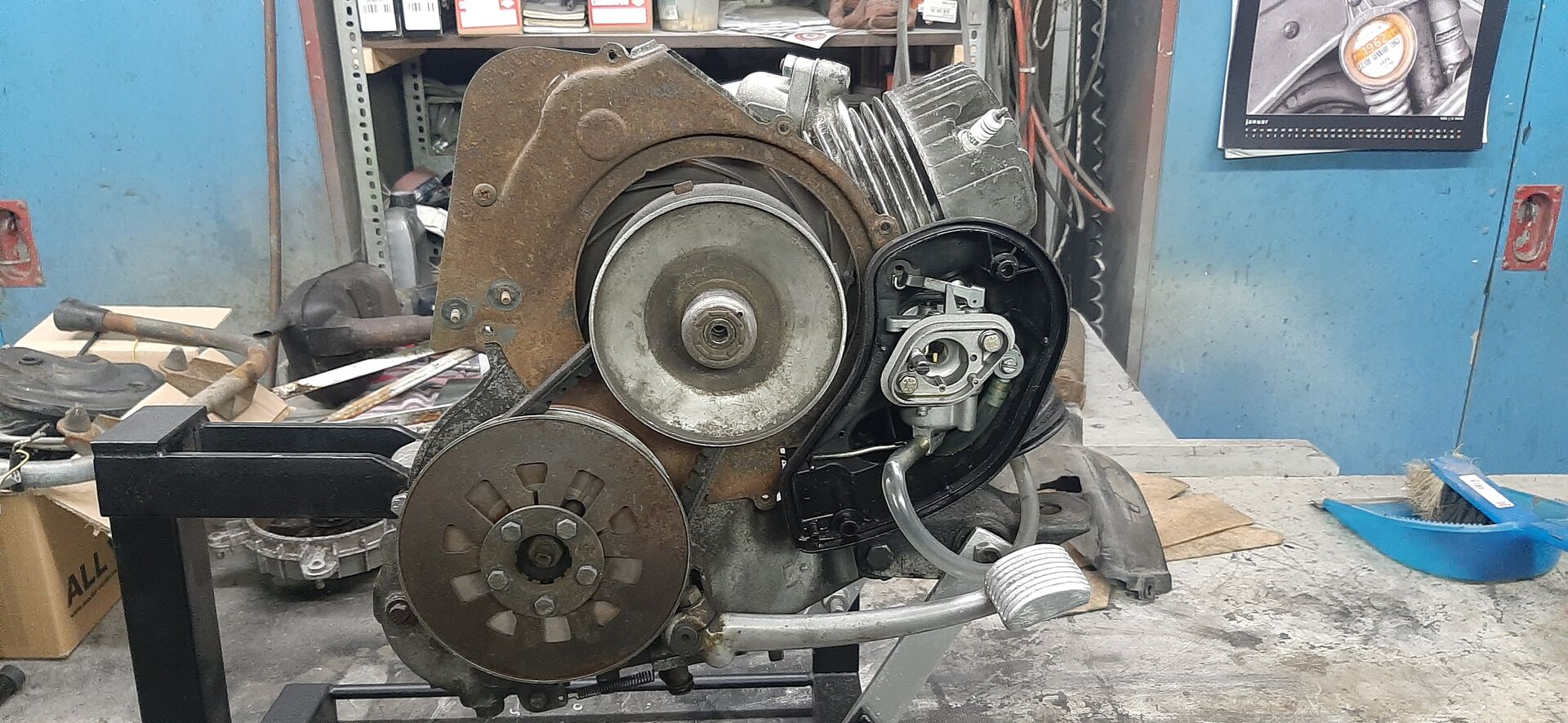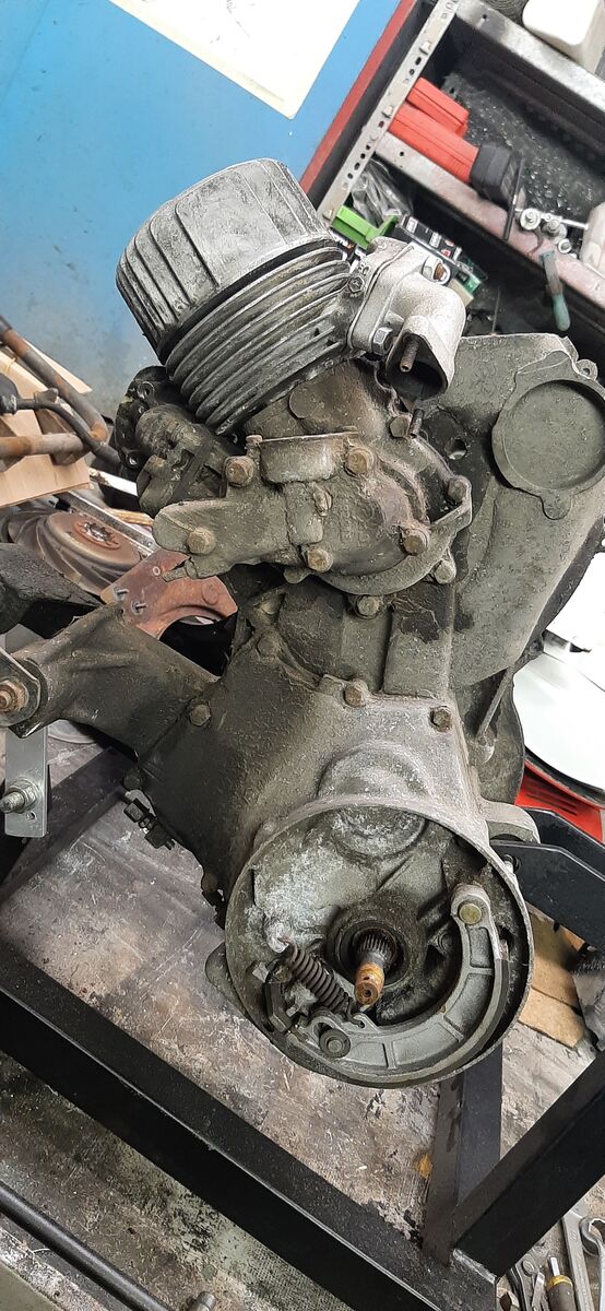 Zu Hause angekommen habe ich den Blindkauf grob unter die Lupe genommen und dabei festgestellt, dass schon mal der obligatorische Pinsaco-Zylinder eingebaut wurde. Eine grobe Reinigung des Vergasers und eine neue Zündkerze mussten reichen, um zumindest den Motor zum Laufen zu bringen und eine kurze Probefahrt zu machen.
