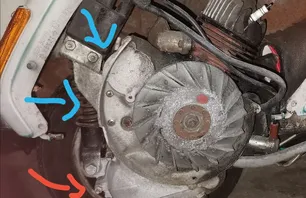 Die Motornummer ist auf dem Lüftergehäuse und fängt mit dem Piaggiologo an, dann folgt V5 und das Präfix hört mit M auf. Darunter ist dann die fünfstellige Nummer zwischen zwei Sternen.