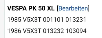 Ich habe seit neuesten eine vespa pk50 xl angeblich bj83.