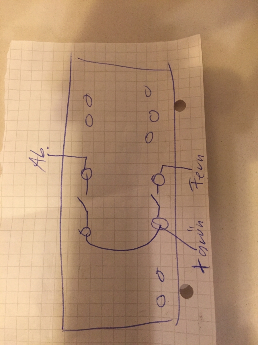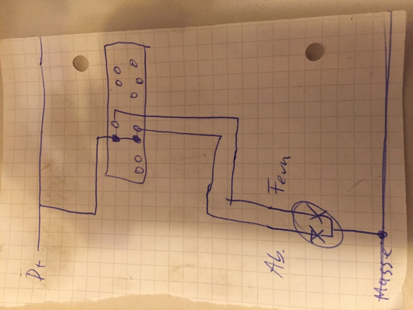 Okay, die obere und untere Schalterstellung überbrücken. Probiere ich mal aus, wie wird das dann am Scheinwerfer angeschlossen?