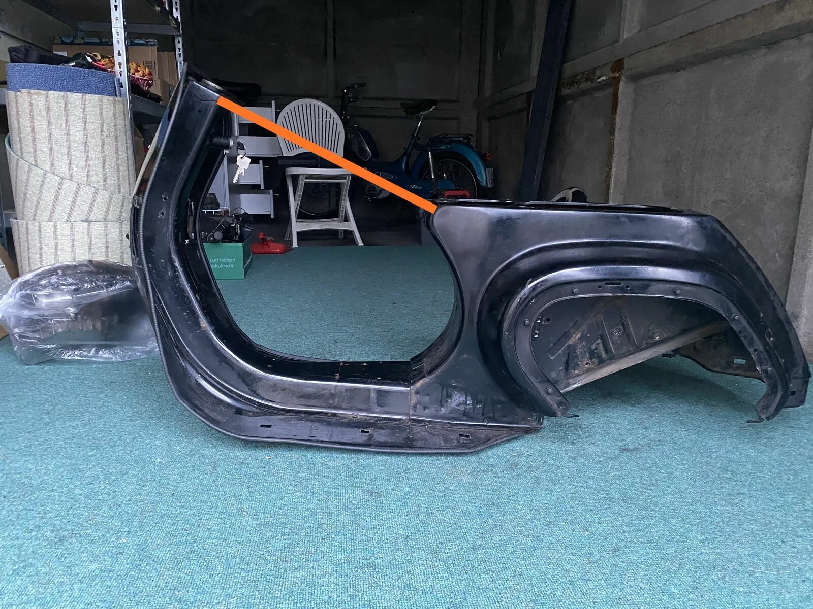 Über einen Unfallschaden wusste ich Bescheid, jedoch war mir das Ausmaß nicht ganz bewusst - gefahren wurde die Vespa > 10 Jahre nicht mehr. Er scheint, dass mein erstes Vespa-Projekt nicht von Erfolg gekrönt sein wird 😕