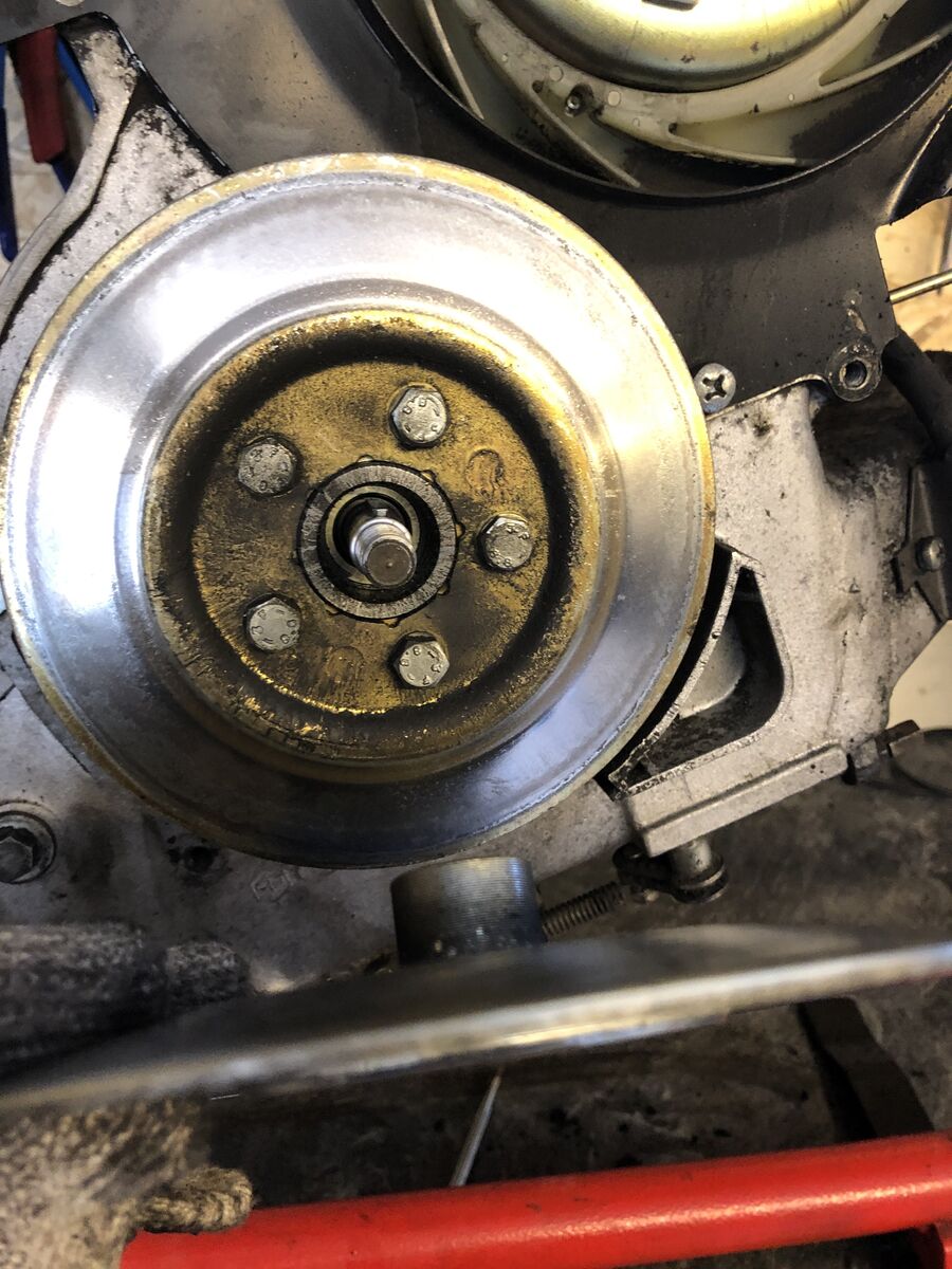 Schau mal, ob die Paßfeder sauber sitzt. Kannst sie ja auch mal rausmachen und testen, ob die Scheibe ohne sauber drauf geht.