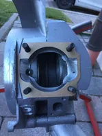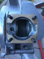 Auf deinem Bild in der letzten Reihe rechts siehst du im Spülkanal den Anguss oben, also auf der schlankeren Seite des Kanals. Er liegt etwas tiefer als die Kontur in der Planfläche und ist deshalb wie das Innere des Kanals gussrau. Im Kanal rder anderen Gehäusehälfte sieht man nichts entsorechendes, vielleicht auch deshalb, weil es dort weniger Licht bei der Aufnahme gab.