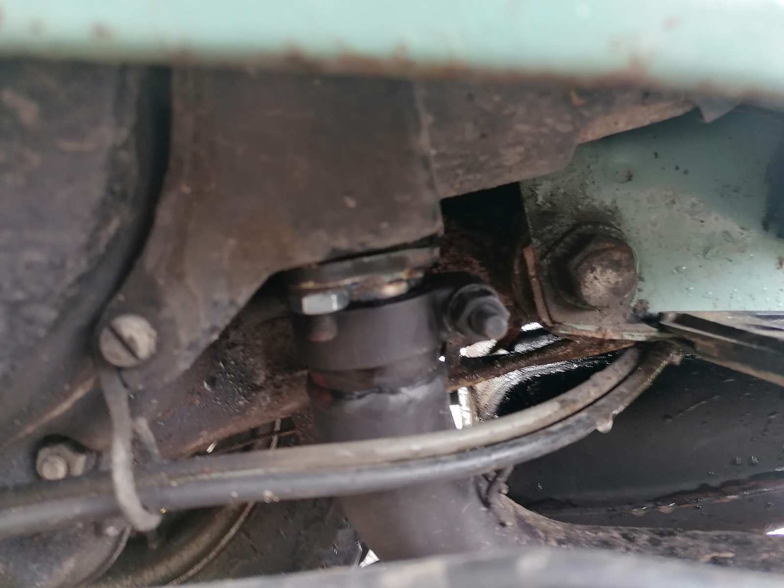 Für mich sieht es so aus, als käme es aus den Reifen ... iss ja klar! In Indien gibt es weniger frische Luft aber genug "Ganges" Wasser! Das gibt wenigstens Sinn, dazu noch die holprigen Straßen :D...