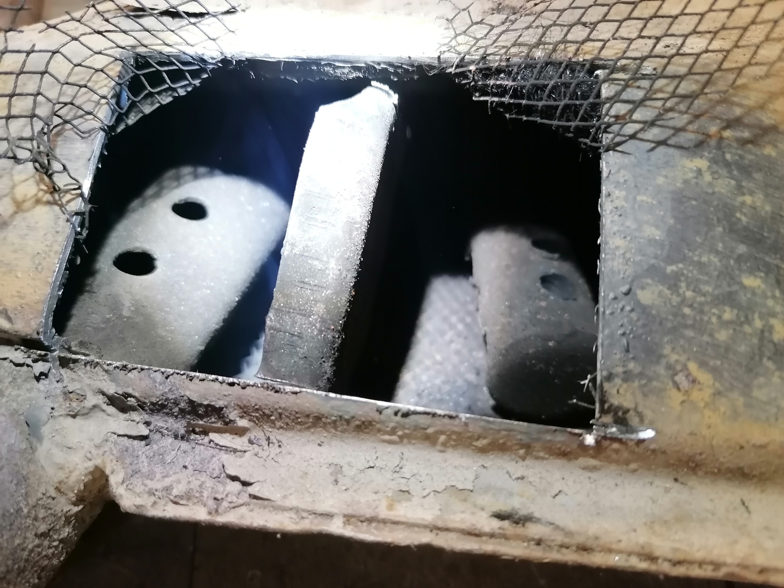 Ich habe den defekten Auspuff mal aufgeflext. Das mittlere Prallblech ist nur noch unten befestigt. Das wird wohl das derbe rappeln gewesen sein weshalb ich den ausgetauscht habe.