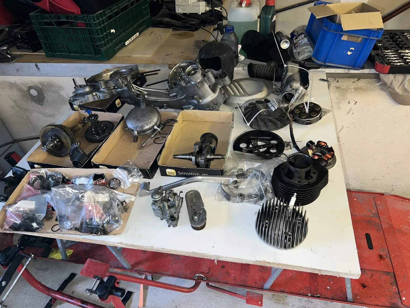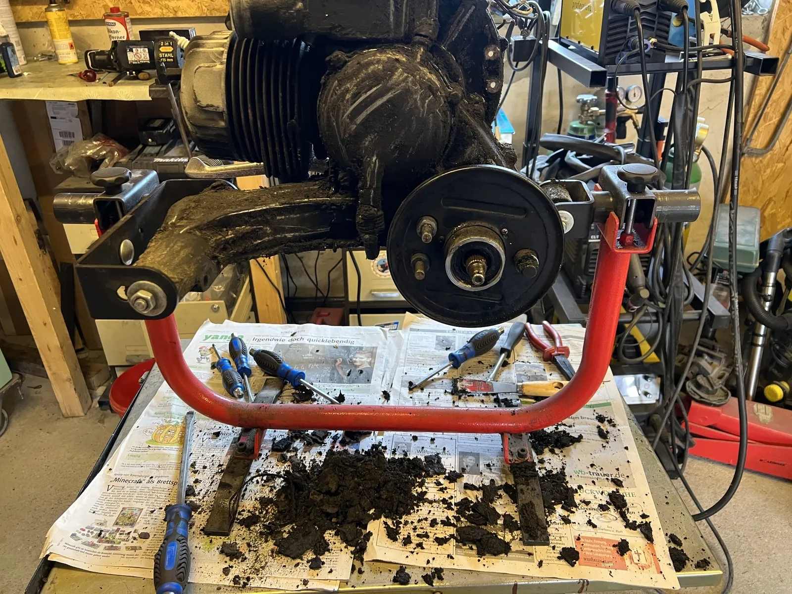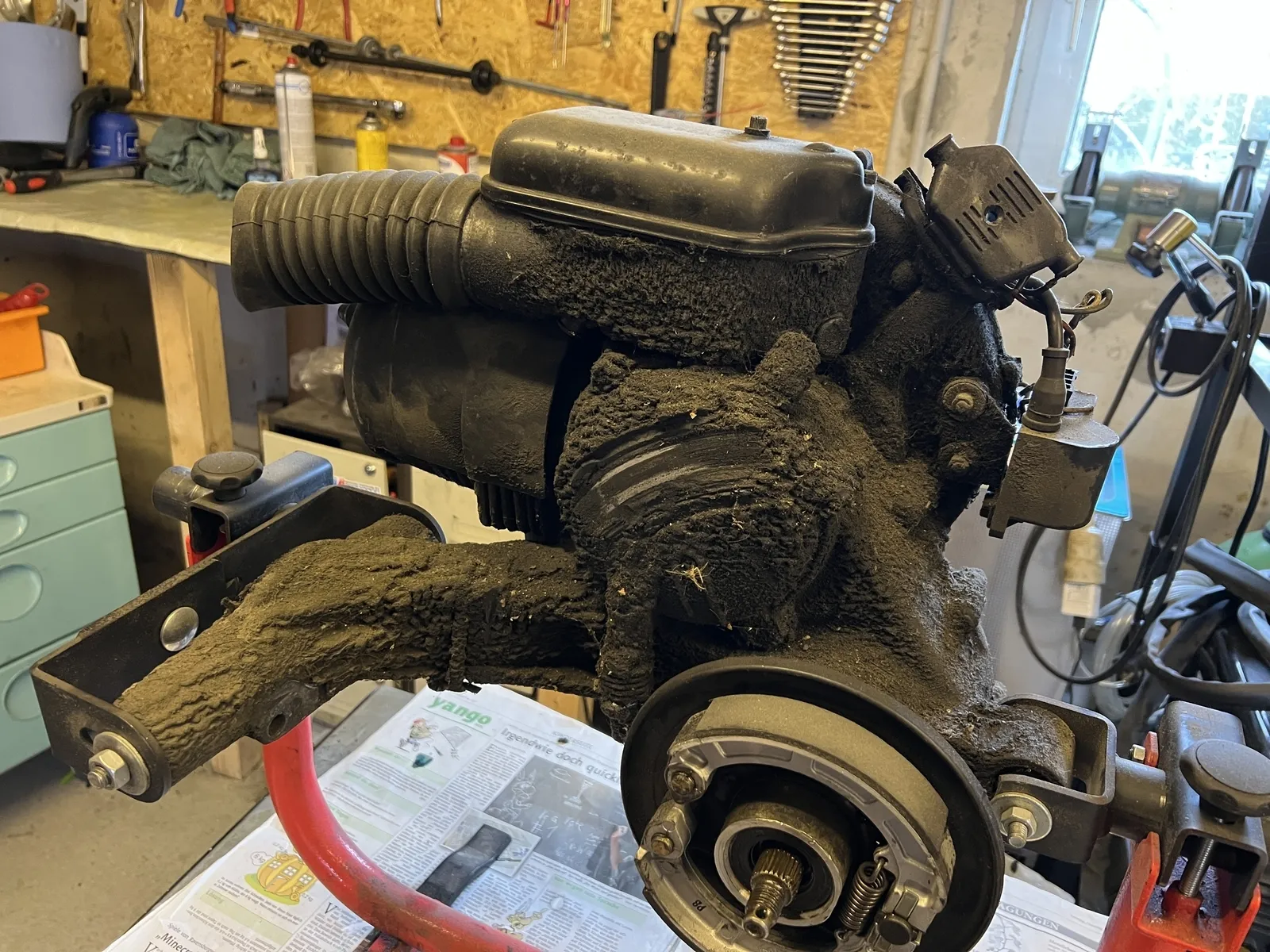 Eben hab ich dann mal die Blechteile gestrahlt. Es prickelt noch schön im Rücken und im Nacken, das Strahlgut ![]()