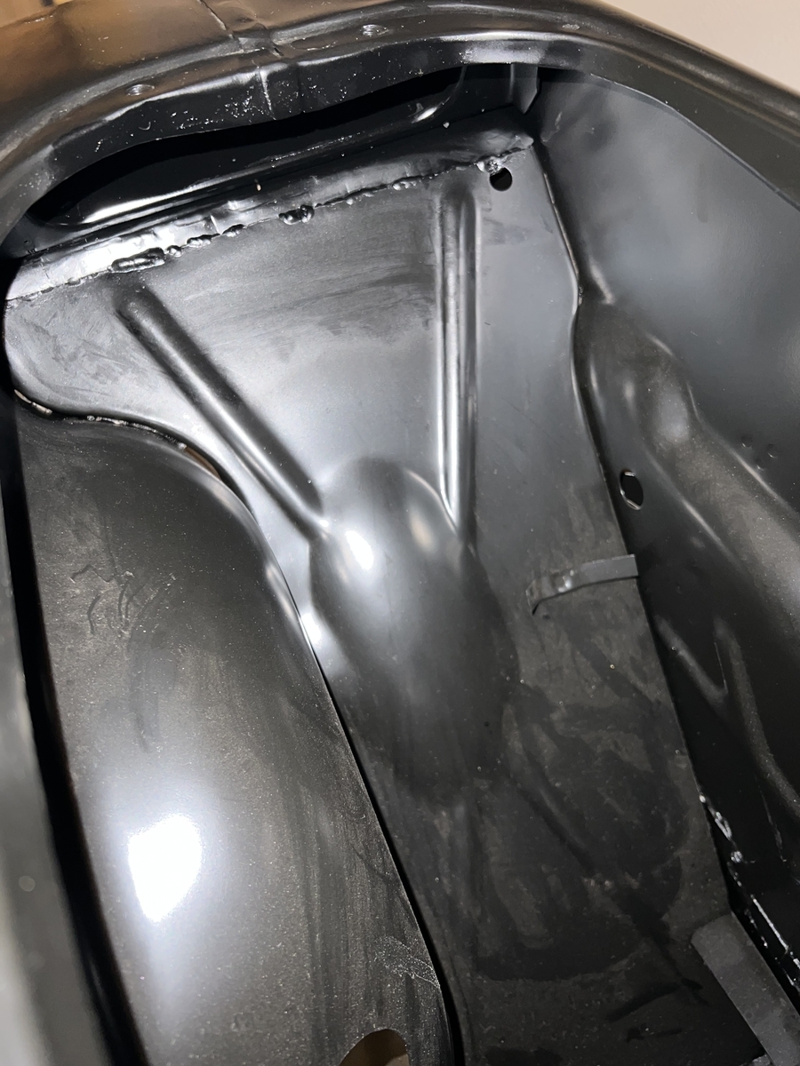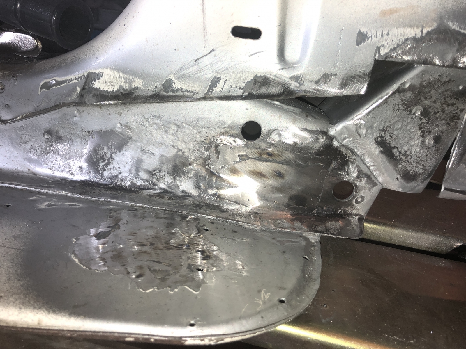 ich hatte jetzt endlich mal wieder etwas Zeit, an der PX weiter zu machen. Die Stoßdämpferaufnahme ist drin, die Bleche auf der linken Seite sind auch eingeschweißt. Jetzt ist mir dummer Weise das Schutzgas ausgegangen und ich kriege hier kurzfristig kein neues ||.