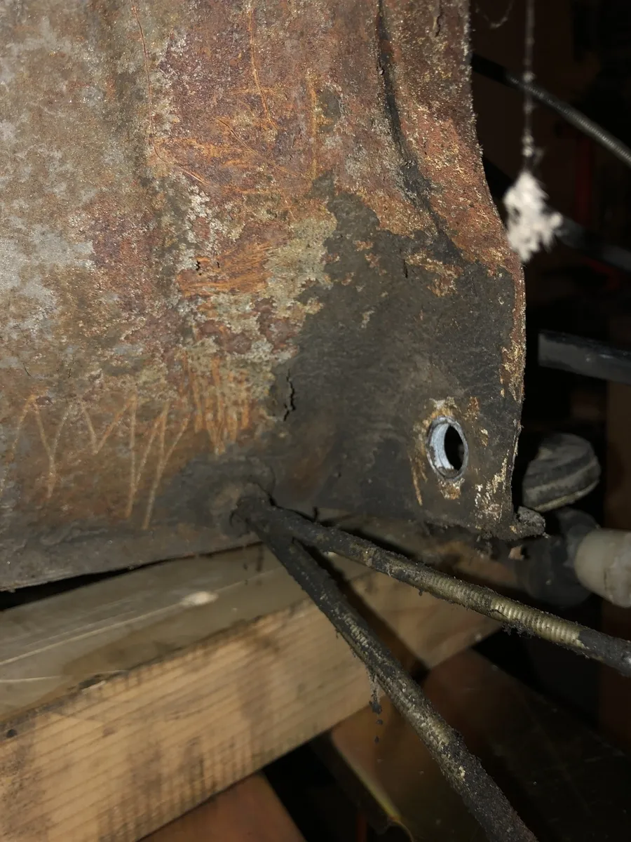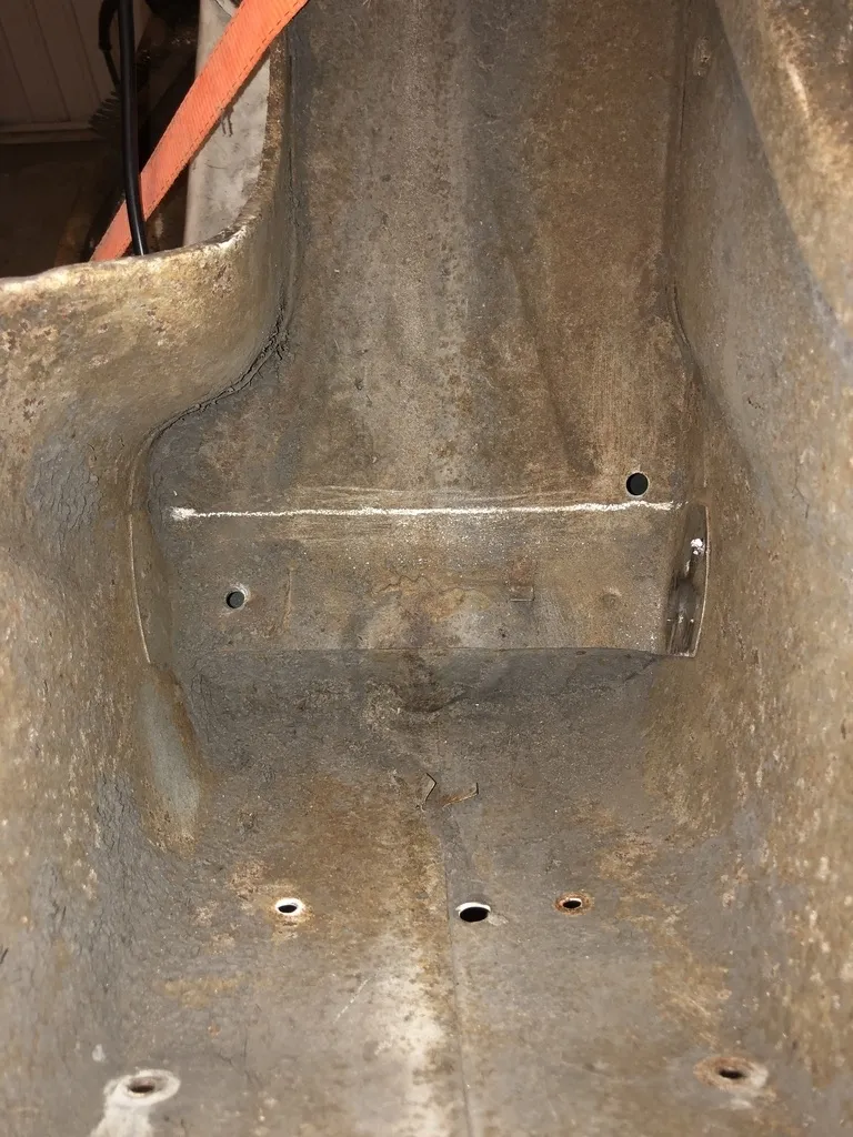 Die Durchrostungen links am Rahmentunnel scheinen überwiegend nur das obere Blech zu betreffen, das darunter - denke ich - kann man erhalten. Rechts werde ich wahrscheinlich nichts einschweissen müssen, mal gucken wenn der Rost runter ist.