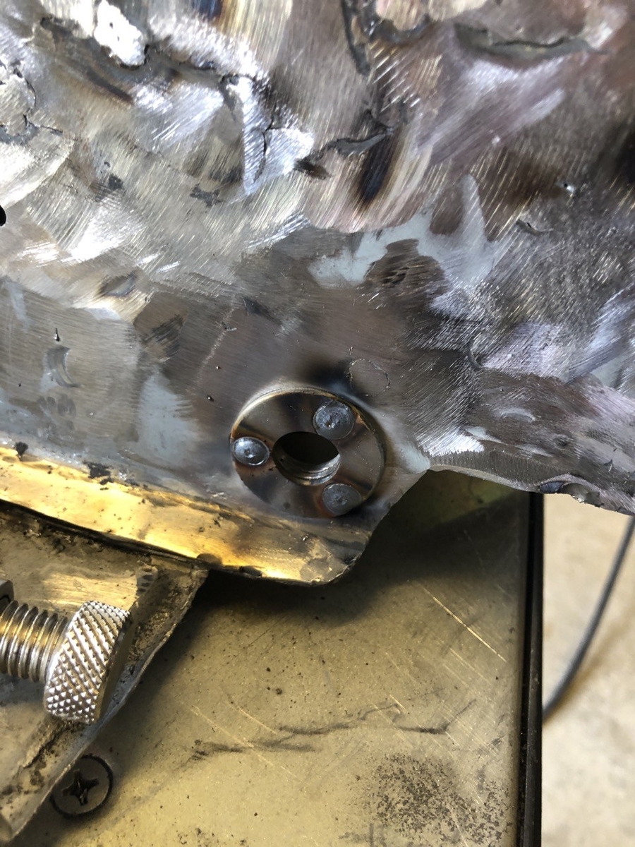 Daher mit dem Gasbrenner erstmal ein bisschen erwärmt das Ganze, dann ließ sich, allerdings auch nur mit reichlich Gewalt, der Bolzen mit einem Ausschläger raustreiben.