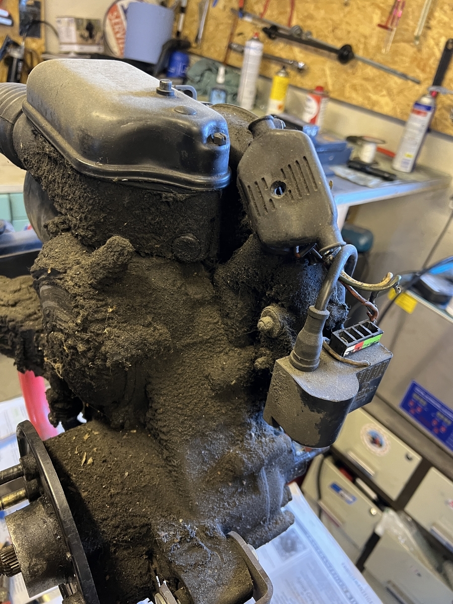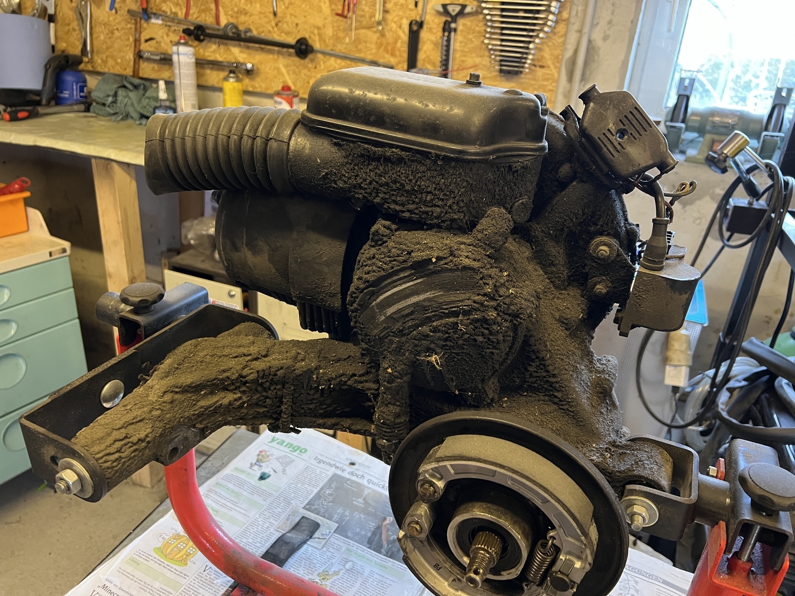Während der Rahmen noch im Keller schlummert und auf Lackierung wartet, hab ich vorhin den Motor mal aus der Ecke geholt. Was ein Siff: