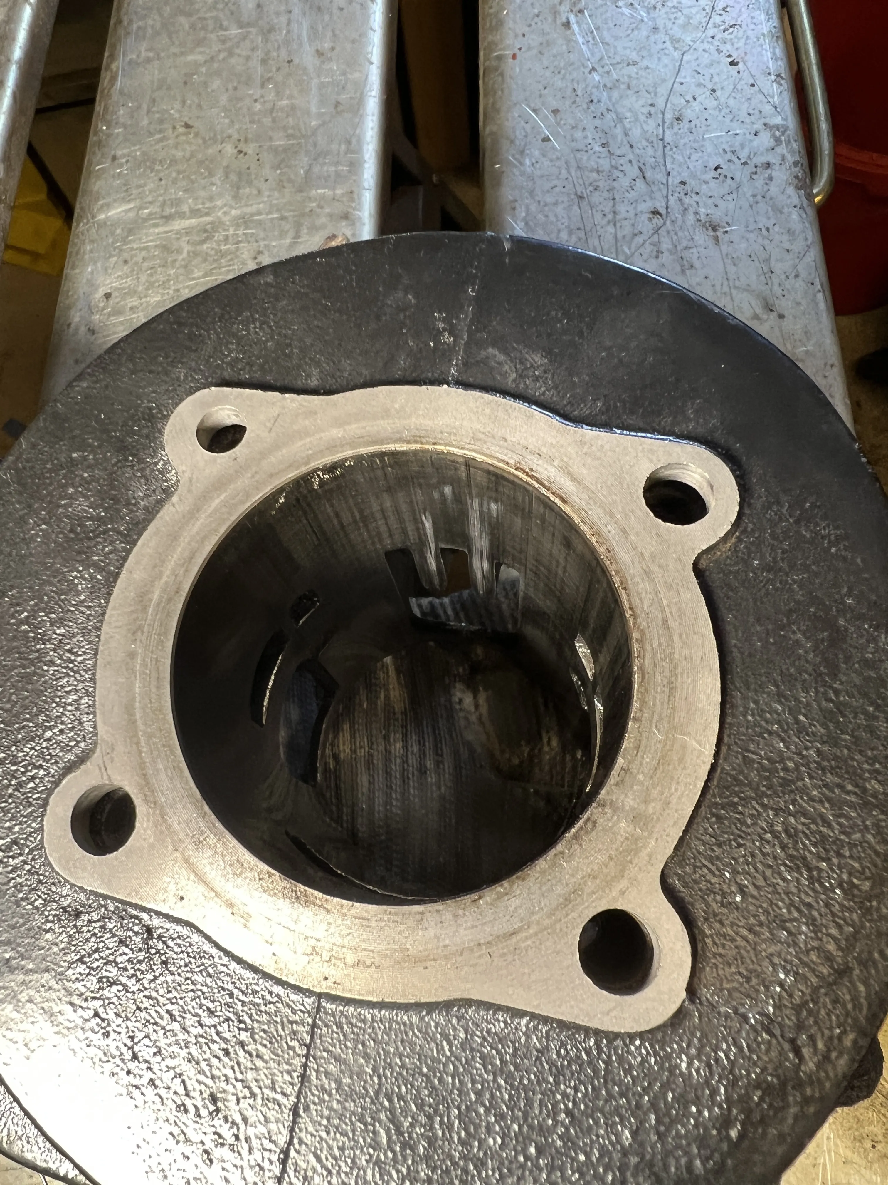 Das sieht eigentlich nicht so schlimm aus. Alle Spuren beseitigen, durch feines Schleifen und Hohnen. Kolbenringnuten leicht nacharbeiten und wieder zusammen bauen.
