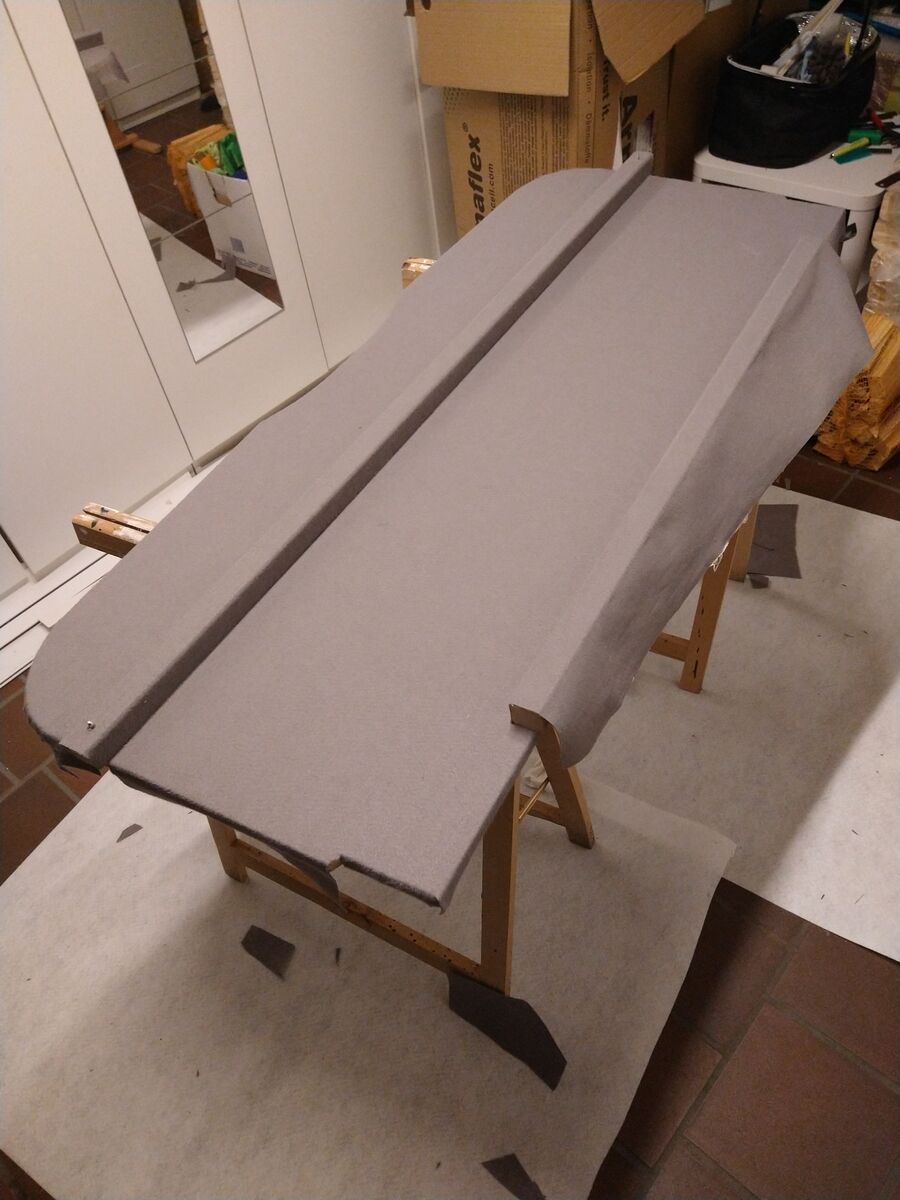 Dann ein Teil der Trennwand heraus genommen und ein Alkoven/ Ablage eingepasst. Wieder rausgebaut und von der Frau beziehen lassen. Für so frikelige Arbeiten habe ich keine Muße und wäre nicht Ansatzweise so schön geworden. Hier noch Mal ein danke an meiner Frau, sollte auch Mal gesagt werden