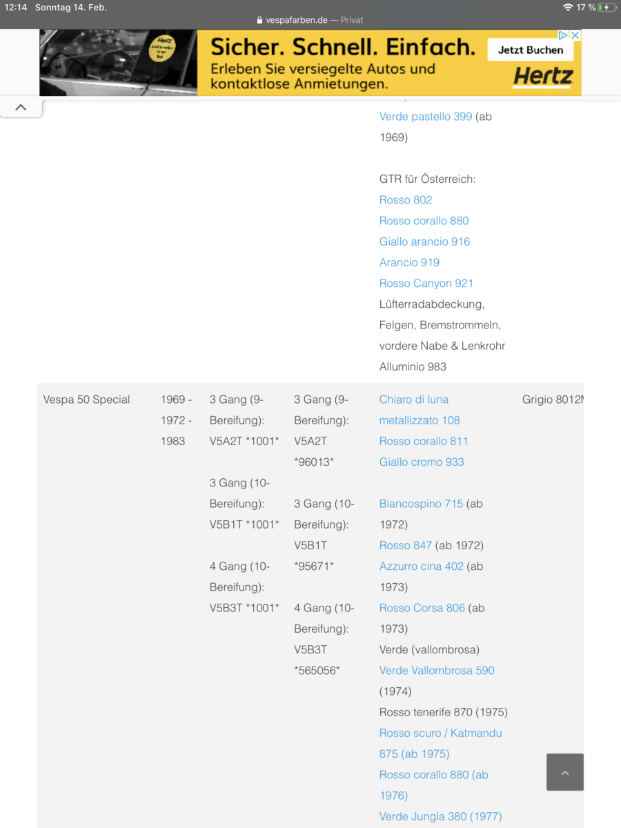 ich habe bei der Recherche nach dem O-Lack einer Special erste Serie folgende Farben festgestellt. Siehe Bild im Anhang. Die Vespa ist aber in chiaro di luna metallizzato lackiert, angeblich aufkleber vorhanden im Rahmen. Kann das sein ?