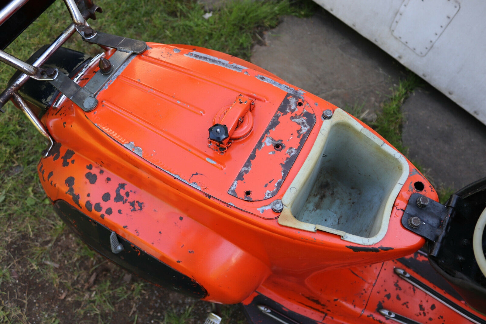 2015 wurde die Vespa rundum generalüberholt und erneuert: Auspuff, Reifenmäntel, Bremsbeläge, Tacho, Lenklager, Unterbrecherkontakte, Kolbenringe und später auch noch der Gaszug.