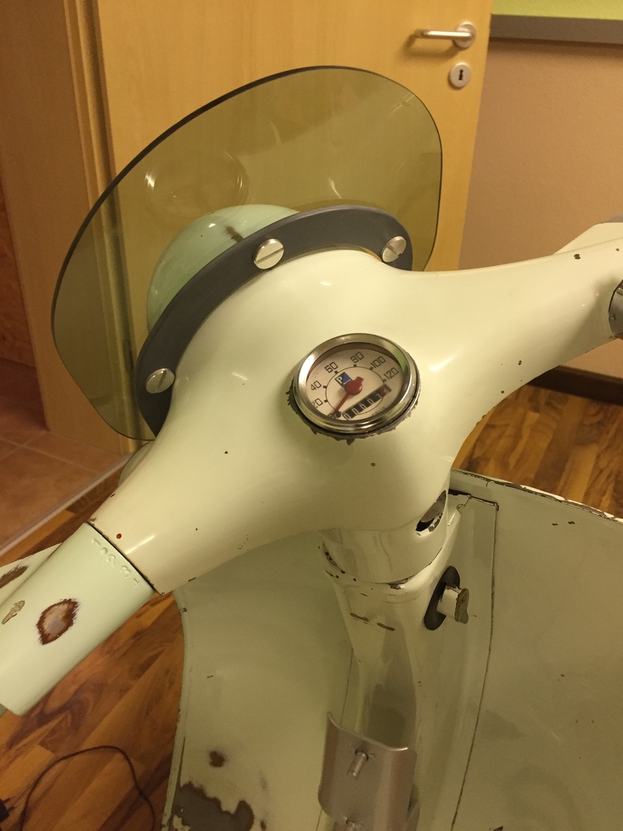 Das Moped ist für mich so an der Grenze, wo man den Erhaltungszustand konservieren kann und mir gefällt es sogar (hatte ich ja bereits zum Ausdruck gebracht, bin ja eher nicht so der "O-Lack" Typ), aber wenn der Windfang nicht gerade schon die letzten 50 Jahre dran war, beißt sich das für so ein bißchen mit dem Ansatz, die Kiste im Erhaltungszustand zu konservieren.