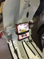 Leider funktionierte meine Konstruktion mit Spiegel am Lenker nicht, so dass er jetzt momentan an einer anderen Position sitzt, da ich den Lenker nicht noch einmal zerlegen wollte, wo jetzt alles funktioniert.