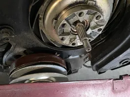 Die Riemenabdeckung war weg und der komplette obere Teil der Automatik, sprich alles was nach dem Lüfter auf der Kurbelwelle sitzt.