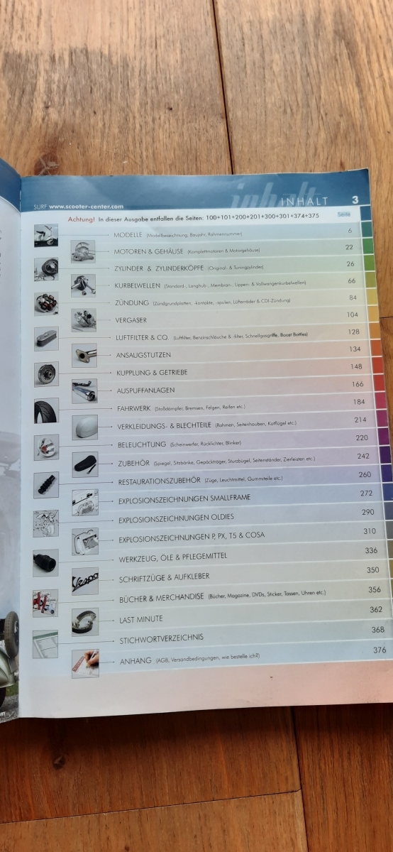 May 7, 2021 at 19:24 #1 hat jemand Verwendung für einen älteren (4. Auflage) Vespa Katalog vom Scooter Center?Die Teilenummern sind bestimmt nicht mehr aktuell. Interessant sind aber bestimmt die Explosionszeichnungen für die Werkstatt und generell zum Schmökern