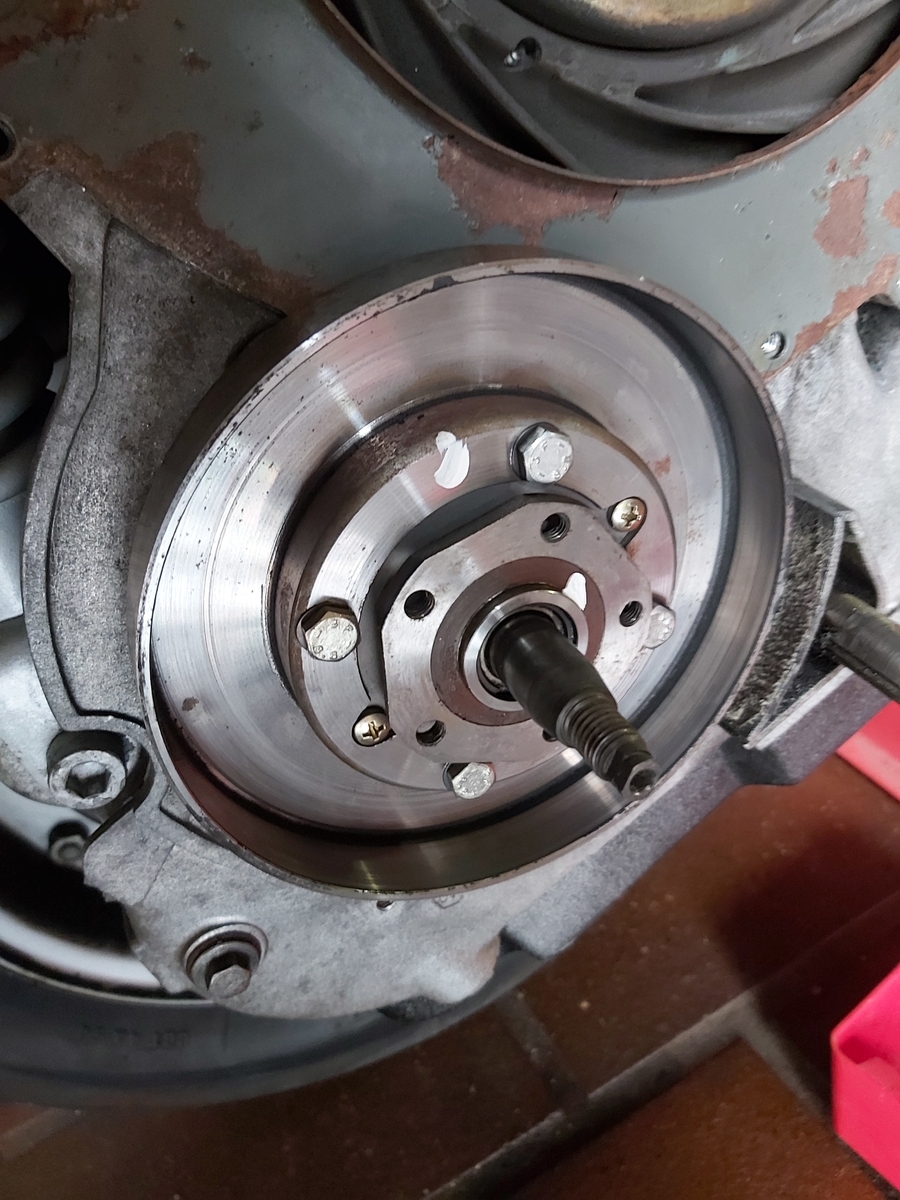 Habe das Polrad stundenlang mit viel Herzblut gefeilt. Die 8 Nasen sind alle 4mm lang, ganz schön fummelig. Der Plastikring passt stramm und ohne große Toleranzen auf die Nasen. Habe auch das Gefühl, daß der neue Plastikring etwas stabiler als der erste (originale) ist. Die aufgelegte Federscheibe passt stimmig. Evtl hält die Sache nun etwas länger.