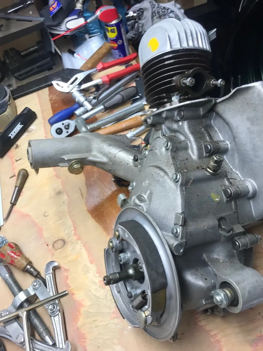• So, Motor ist draußen und bevor es ans Eingemachte geht, habe ich zum Aufwärmen ein paar Anbauten entfernt. Sieht ganz gut aus, keine Schäden, wenig Dreck.