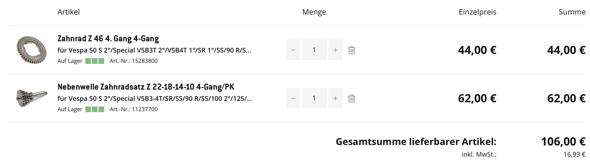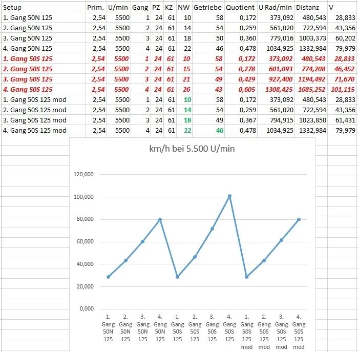 • …im Zuge des Telefonats hat mich mein Gesprächspartner korrekterweise auf eine Sache hingewiesen. Er (dessen fachliches Know How ich null in Frage stelle) hat mich darauf hingewiesen, dass mein 50S-Motor größere Gänge hat: