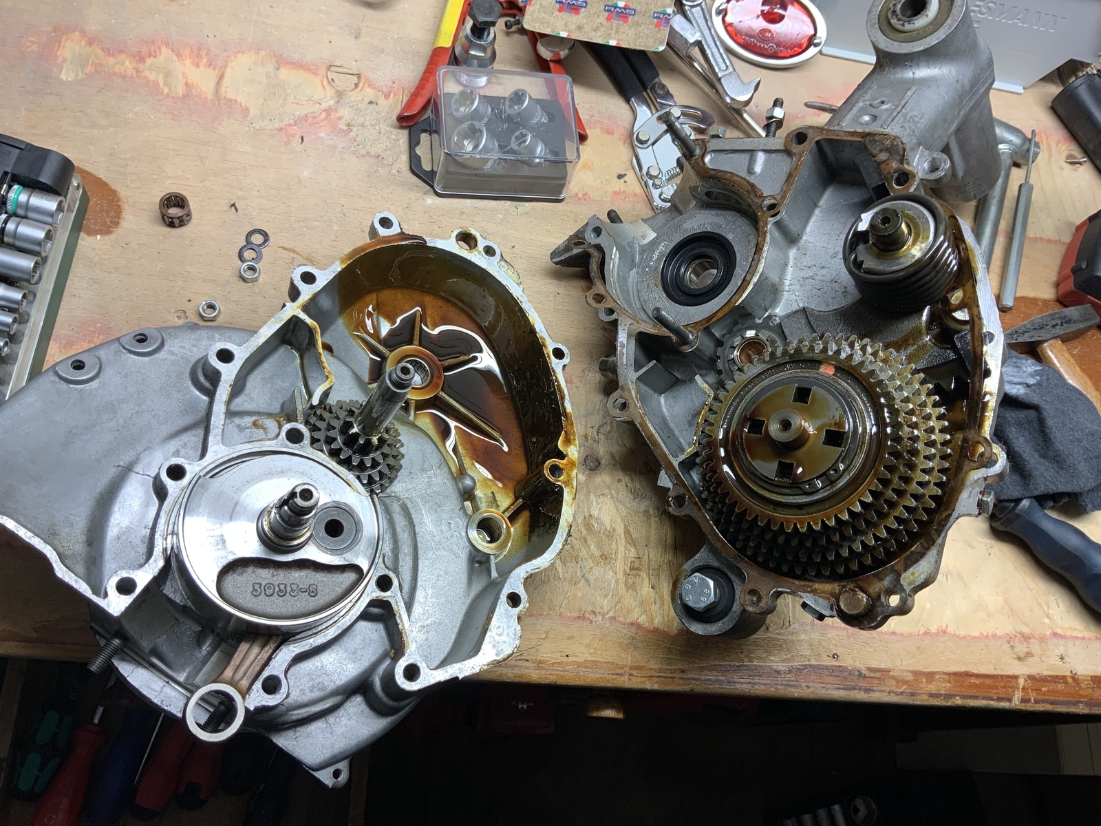 Bevor ich weitermache, werde ich mir mal über die richtige Reihenfolge Gedanken machen, die Jungs von Gronsdorf haben hier ein Videotutorial zur Motorrevision, das werde ich mir nochmal zu Gemüte führen.