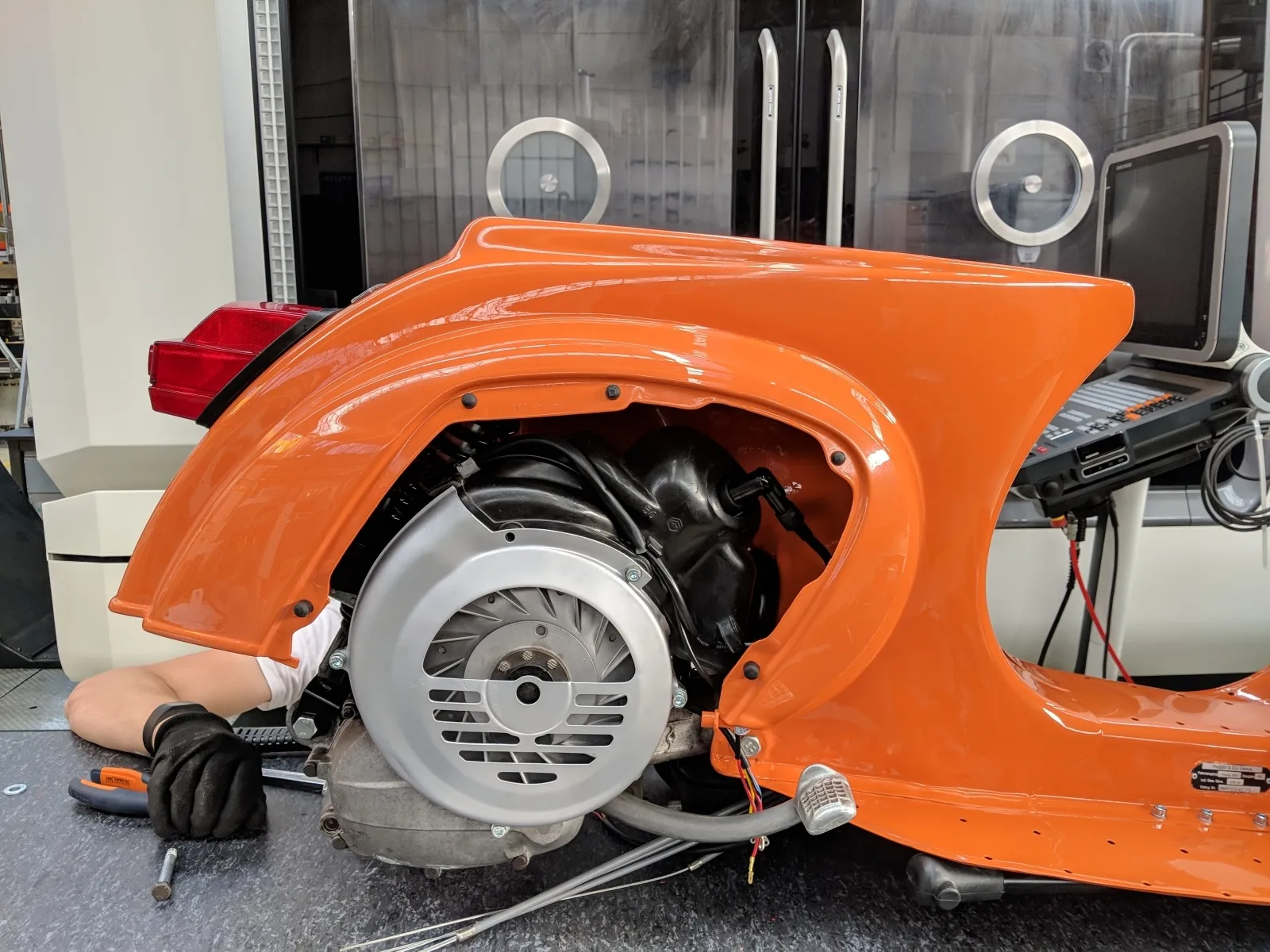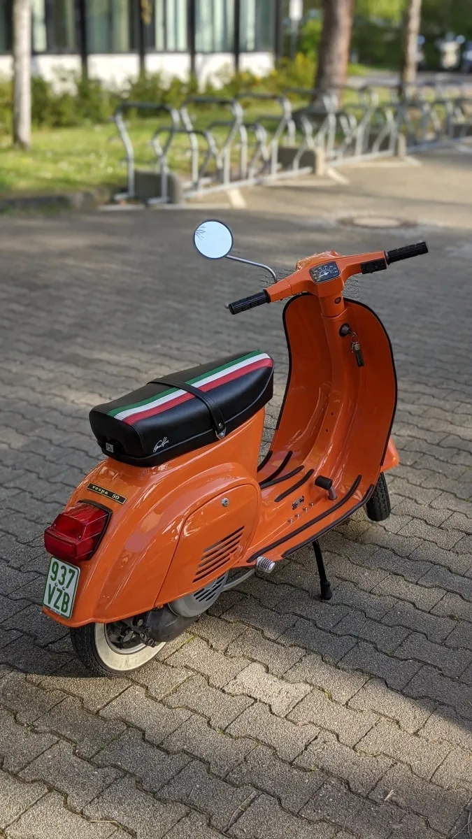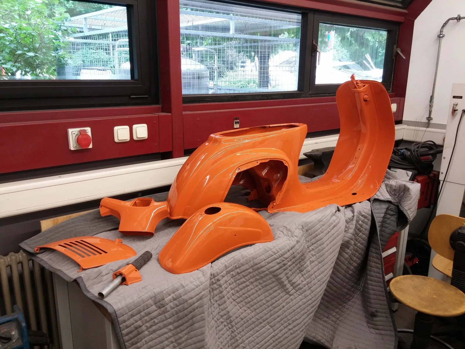Ich habe bei der Arbeit versucht so viele der originalen Bauteile zu verwenden wie möglich. Nach Abschluss der Arbeiten habe ich die Vespa noch bei einer Rollerwerkstatt im Odenwald vorbeigebracht, um sie einmal durchchecken zu lassen und die Zündung richtig einzustellen.