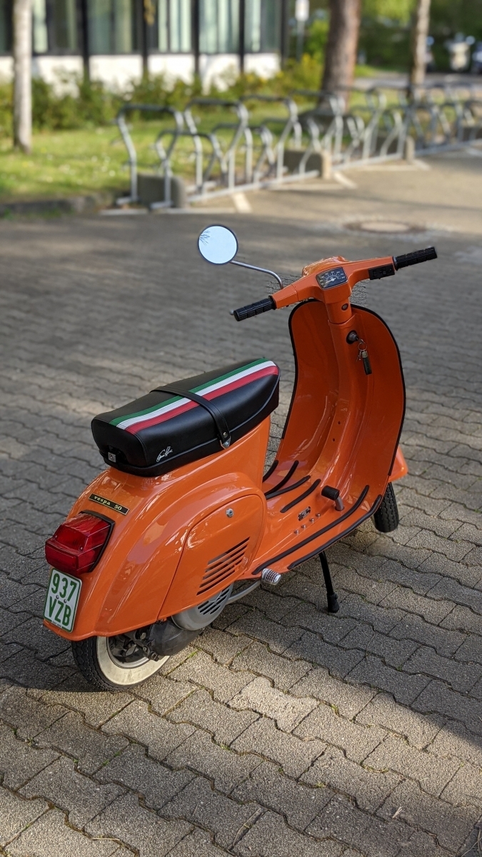 Ich habe bei der Arbeit versucht so viele der originalen Bauteile zu verwenden wie möglich. Nach Abschluss der Arbeiten habe ich die Vespa noch bei einer Rollerwerkstatt im Odenwald vorbeigebracht, um sie einmal durchchecken zu lassen und die Zündung richtig einzustellen.