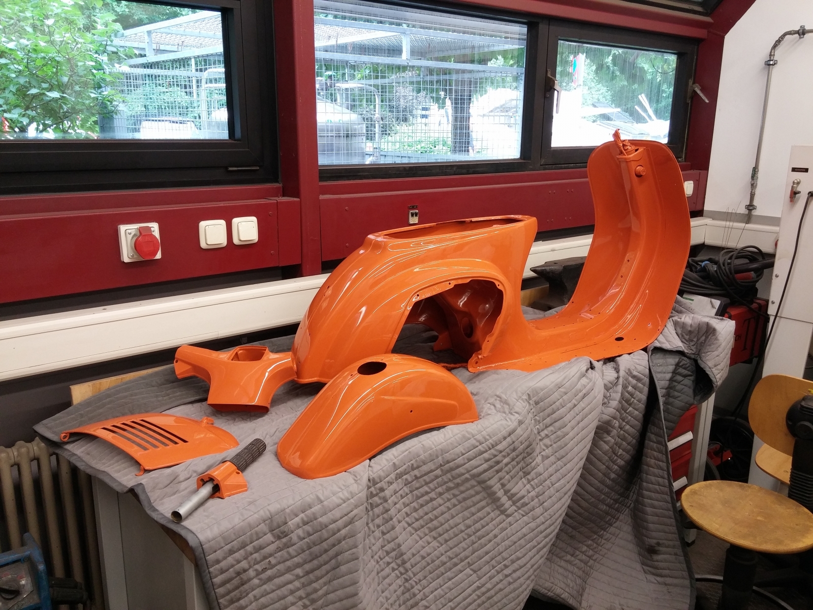 - Der (rostfreie) Rahmen in einer Lackiererei in Heidelberg neu lackiert
