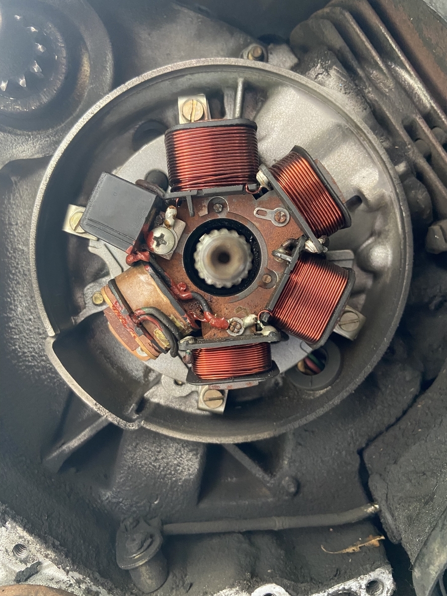 Erregerspule sieht relativ braun aus und die 2 eigentlich grünen Kabel daran schon eher Schwarz.